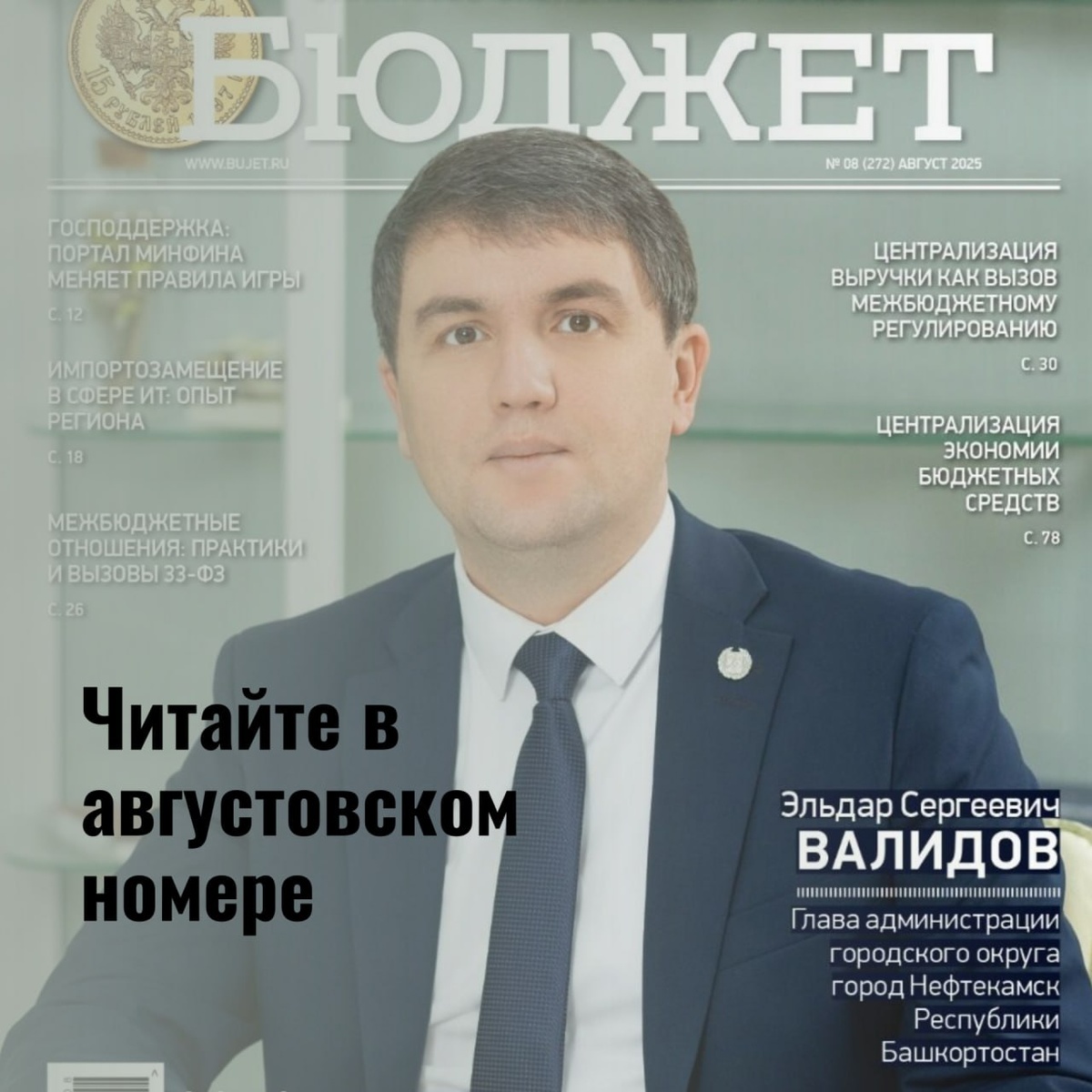 Августовский номер журнала "Бюджет" уже доступен на сайте На обложке нового номера — глава администрации Нефтекамска Эльдар Валидов. В интервью "Бюджету" он рассказал о системной работе по созданию в муниципалитете благоприятных условий для бизнеса и инвестиций. Ее результатом стало лидерство города в региональном рейтинге муниципального инвестиционного стандарта в категории "Городские округа". Также в номере: ⚫️Как портал Минфина упростил выдачу субсидий для предпринимателей ⚫️Импортозамещение в сфере ИТ: опыт Челябинской области ⚫️Предложения Нижегородской области по выравниванию налогового потенциала регионов ⚫️Эффективное управление муниципальными финансами Краснодара ⚫️Межбюджетные отношения: практики Чувашии и многое другое ➡️ Некоторые материалы будут открыты на сайте журнала. Все остальное доступно нашим подписчикам