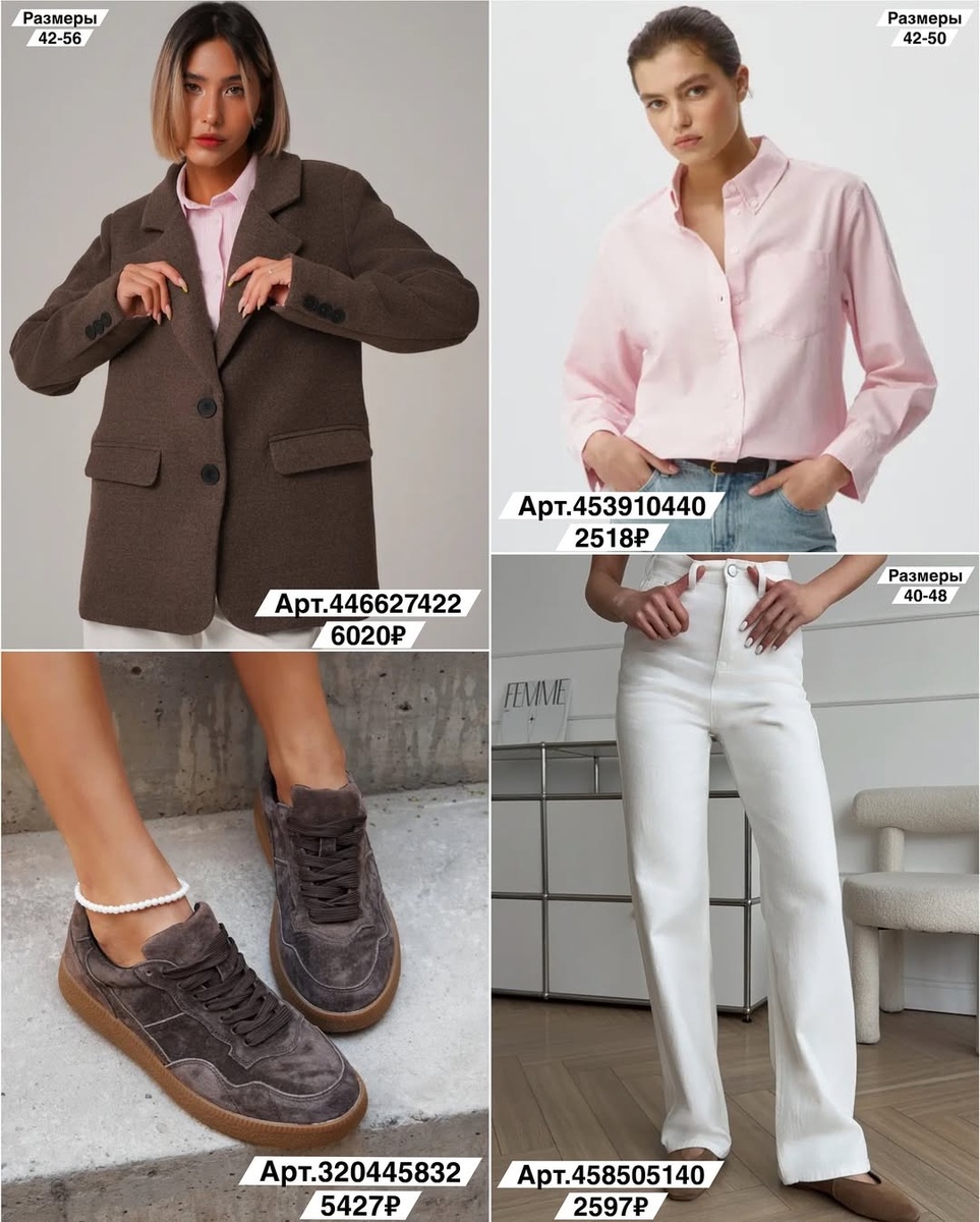 Эта подборка — конструктор на каждый день: чистые линии, рабочие цвета (молочный, шоколад, чёрный, белый, вино, пастель), фактуры «на сезон» (замша, плотный трикотаж, деним). Каждую вещь разберу отдельно: что это, как сидит, чем хороша как база и как стилизовать. Иду строго по порядку и с артикулами, как на фото.
