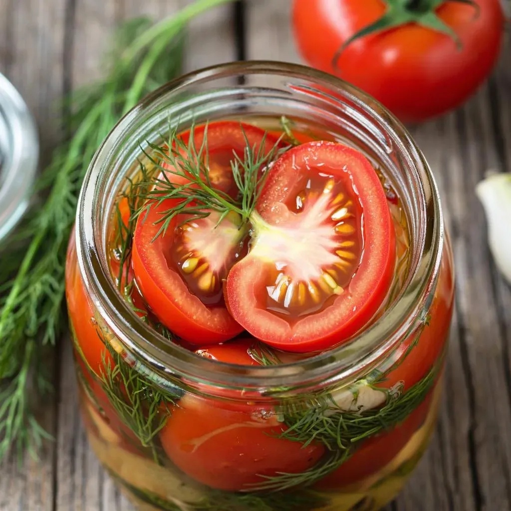 Вкуснейшие маринованные помидорчики: идеальная заготовочка 🍅💥 Привет-привет! 😊 Если вы любите закатывать баночки на зиму и хотите удивить близких ароматной вкуснятиной — этот рецептик точно вам понравится! Что понадобится? Помидорки (желательно небольшие, мясистые сорта) Чесночок свежий — несколько зубчиков Лавровый листочек — пару штучек Горошинки черного перца — штук пять-шесть Уксусчик столовый (9%) — примерно полстаканчика Сахар-песочек — две столовые ложечки Соль каменная — одна ложка чайная Вода кипячёная тепленькая — около литра Зелень свежая петрушечка или укропчик — пучочек небольшой Важно: Все продукты лучше заранее подготовить и промыть водой прохладненькой. Особенно внимательно перебираем помидорки, чтобы не было подпорченных или помятых плодов. Процесс приготовления пошагово 👇🏻 Подготовка Берём простенькие стерилизованные баночки и крышечки. Томаты моем и обсушиваем полотенчиком бумажным. Укладка овощей Кладём на дно банки лаврушечку, горошины перчика, чесноч