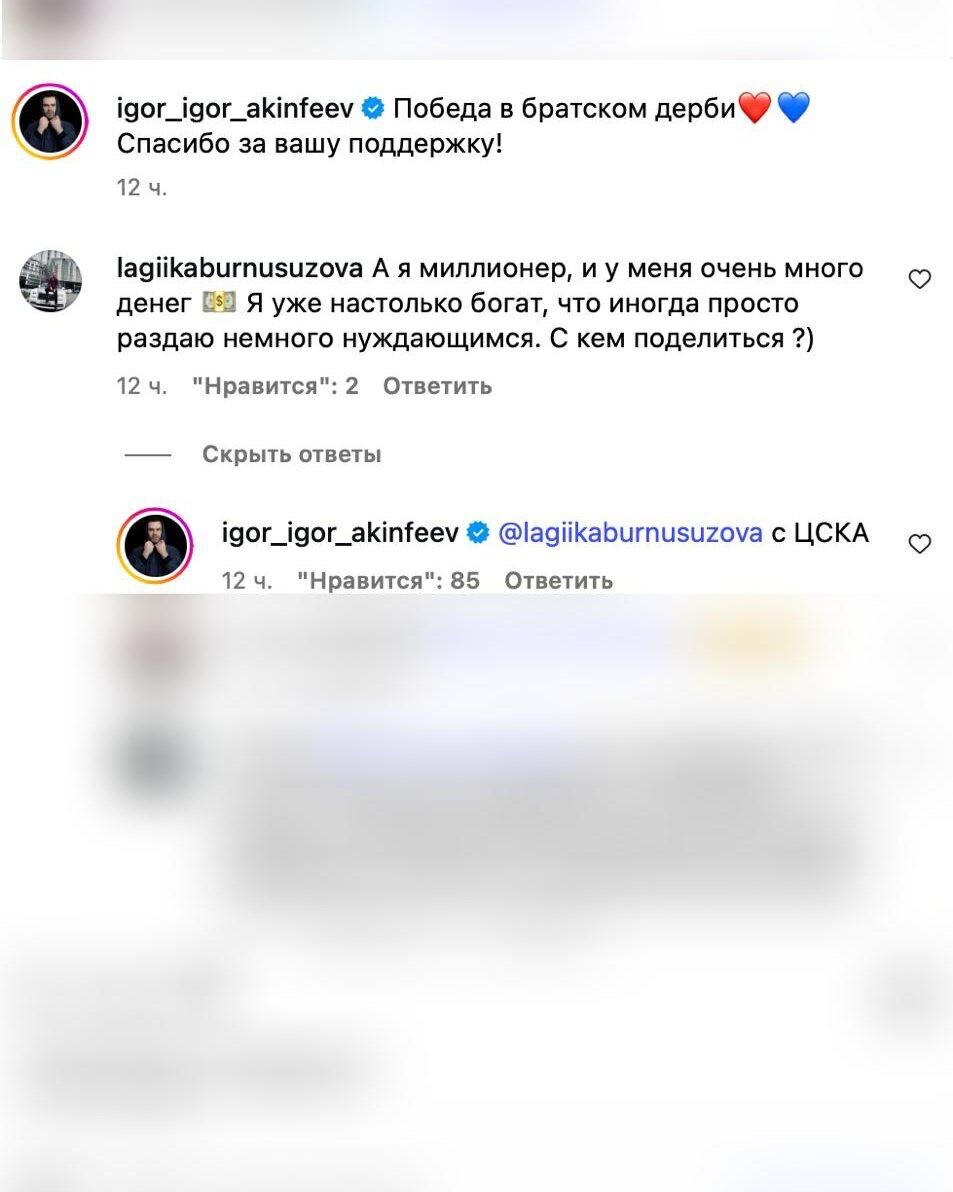 ⚽️ 💰 Акинфеев попросил у бота денег для ЦСКА Голкипер красно-синих отреагировал на комментарий в соцсетях от бота, который спрашивал, с кем поделиться деньгами, поскольку «раздаёт их нуждающимся». «С ЦСКА», — написал в ответ спортсмен. Армейцы после пяти туров идут в группе лидеров РПЛ. Они набрали 11 очков и располагаются на третьем месте, на два балла отставая от возглавляющего таблицу «Локомотива». Накануне красно-синие в матче 5 тура чемпионата победили «Динамо» 3:1. @russian_rt_sport