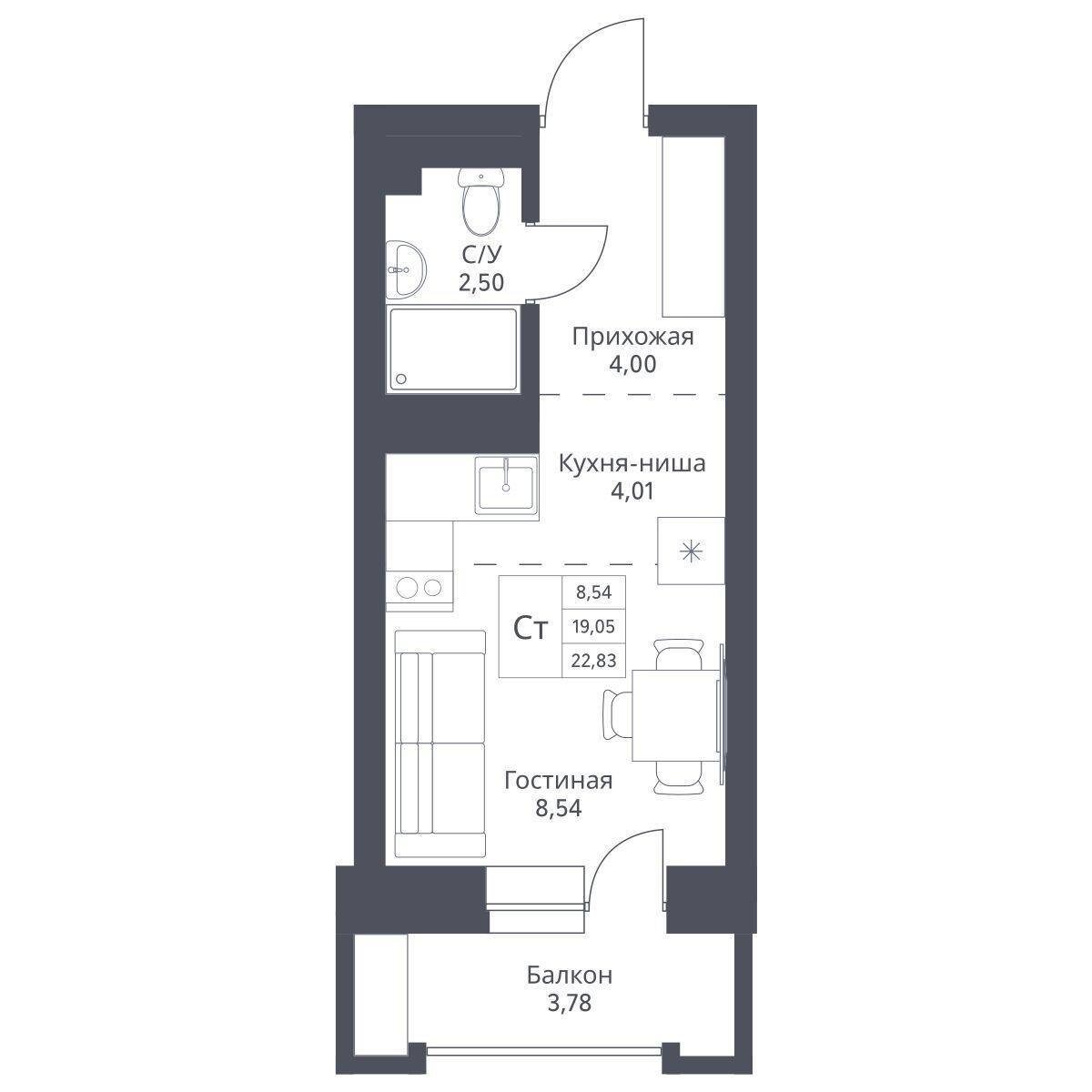 Студия 22,83 м2