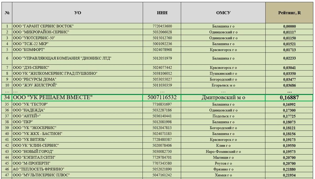 Рейтинг управляющих организаций за 2 квартал 2025 года составили в Подмосковье🥰 Министерство по содержанию территорий и государственному жилищному надзору Московской области провело оценку деятельности 809 муниципальных и частных управляющих организаций региона за второй квартал текущего года. 🏆Очень приятно обрадованы данными этого рейтинга, согласно которому Ваша управляющая компания "Решаем вместе" находится на 34 месте по Московской области среди 809 управляющих компаний и на 1 (первом) месте в срезе по Дмитровскому муниципальному округу! Эксперты отрасли оценивали следующие категории в работу УО: эффективность функционирования единой диспетчерской службы (ЕДС), отсутствие долгов перед ресурсоснабжающими организациями (РО) и ресурсоснабжающими предприятиями (РСО), количество жалоб на качество обслуживания жилого фонда, степень наполненности информацией государственной информационной системы жилищно-коммунального хозяйства (ГИС ЖКХ), присутствие аварийно-диспетчерской службы, н