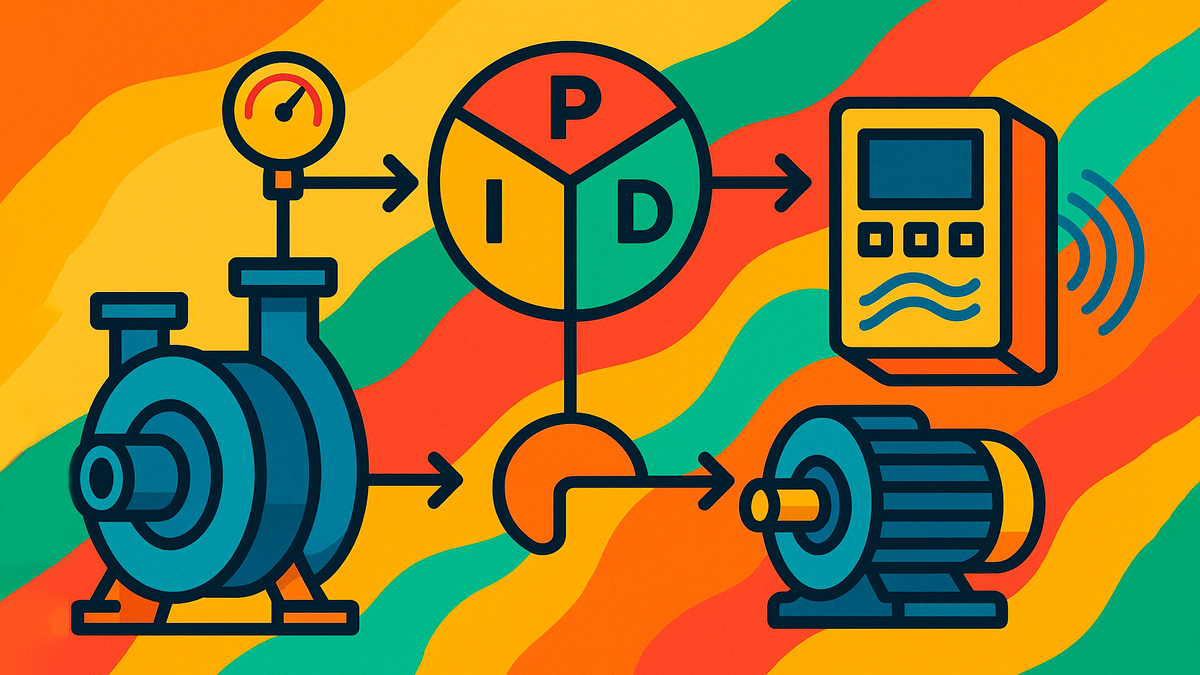 Частотные преобразователи (ПЧ) давно стали стандартом в управлении насосами, вентиляторами, компрессорами и другими механизмами с переменной нагрузкой. Но чтобы система работала не просто «по кнопке», а автоматически поддерживала нужные параметры (давление, расход, температуру), к частотнику добавляют ПИД-регулятор. В современности почти каждый преобразователь частоты уже имеет в себе параметры ПИД и настройки сна/пробуждения. Разберём, как они взаимодействуют и где применяются. ПИД-регулятор - это алгоритм управления, основанный на принципе обратной связи. Он сравнивает заданное значение (уставку) с текущим значением (например, давления в трубе) и корректирует управляющее воздействие, чтобы свести ошибку к минимуму. ПИД - это аббревиатура трёх составляющих: · P (пропорциональная часть) - реагирует на текущую разницу между уставкой и фактическим значением. · I (интегральная) - накапливает ошибку во времени и компенсирует медленные отклонения. · D (дифференциальная) - предсказывает напр