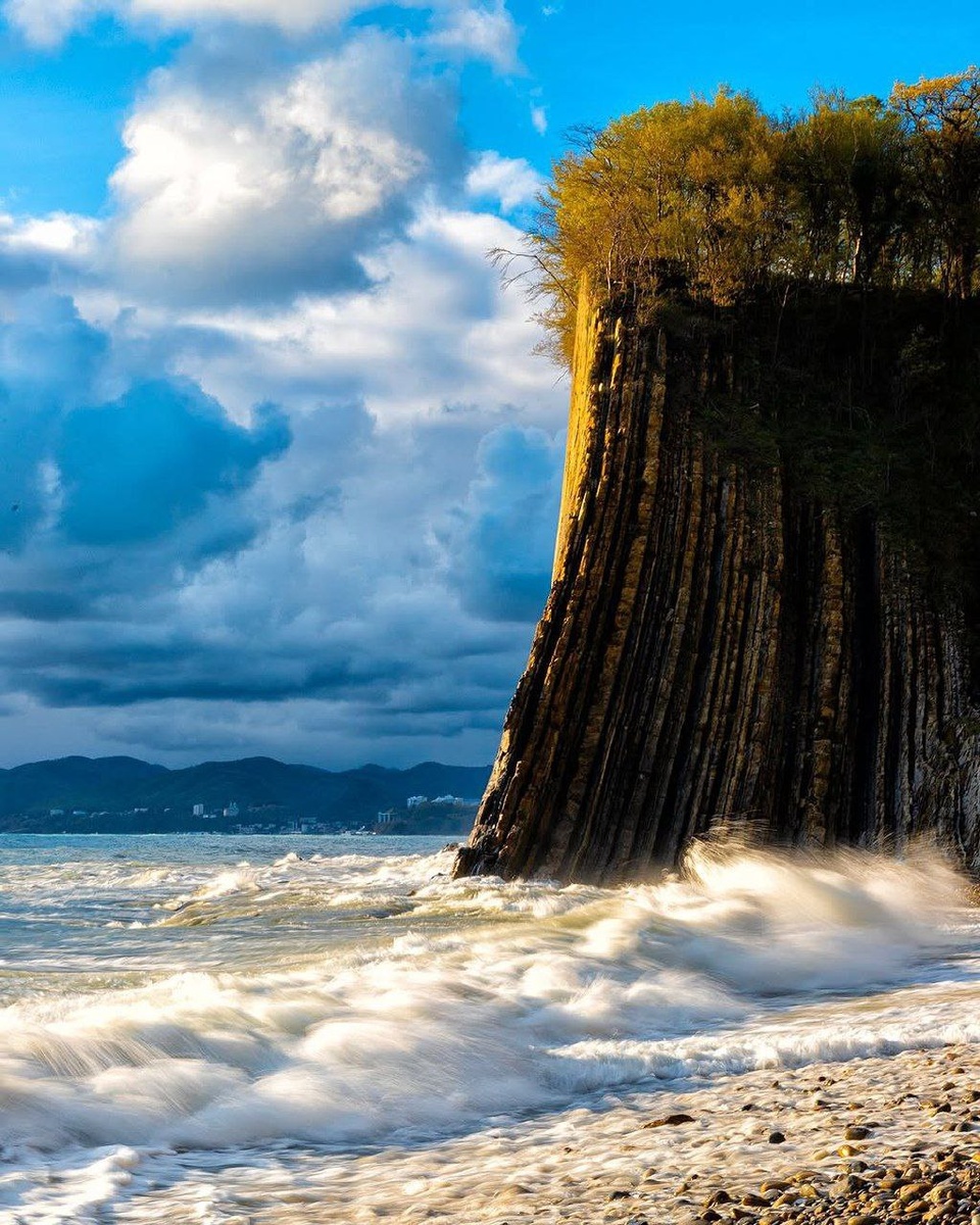 🏔 Скала Киселёва: исполин у моря Почти 50 метров неприступной скалы, словно высеченной рукой великана, нависают над бирюзовой гладью Черного моря. Это — Скала Киселёва, один из самых живописных символов побережья, всего в 4 км от Туапсе. Её отвесная стена, гладкая, будто отполированная ветрами и волнами, кажется декорацией к древней легенде. Своё имя скала носит в честь художника Александра Киселёва, запечатлевшего её суровую красоту на своих полотнах. Но у этого места есть и другое, потаённое название — «Скала слёз». Говорят, когда-то здесь, отвергнув неволю, бросилась в пучину гордая адыгская девушка, предпочтя смерть браку без любви. Мировую славу скале принесла знаменитая сцена из «Бриллиантовой руки», но её истинное богатство — природа. Сосны, цепляющиеся за каменистые уступы, изумрудный Кадошский лесопарк, бездонное море — здесь каждый кадр достоин кисти художника. Добраться можно пешком вдоль берега, на катере из Туапсе или через лесную тропу от парковки. Но лучше всего — в