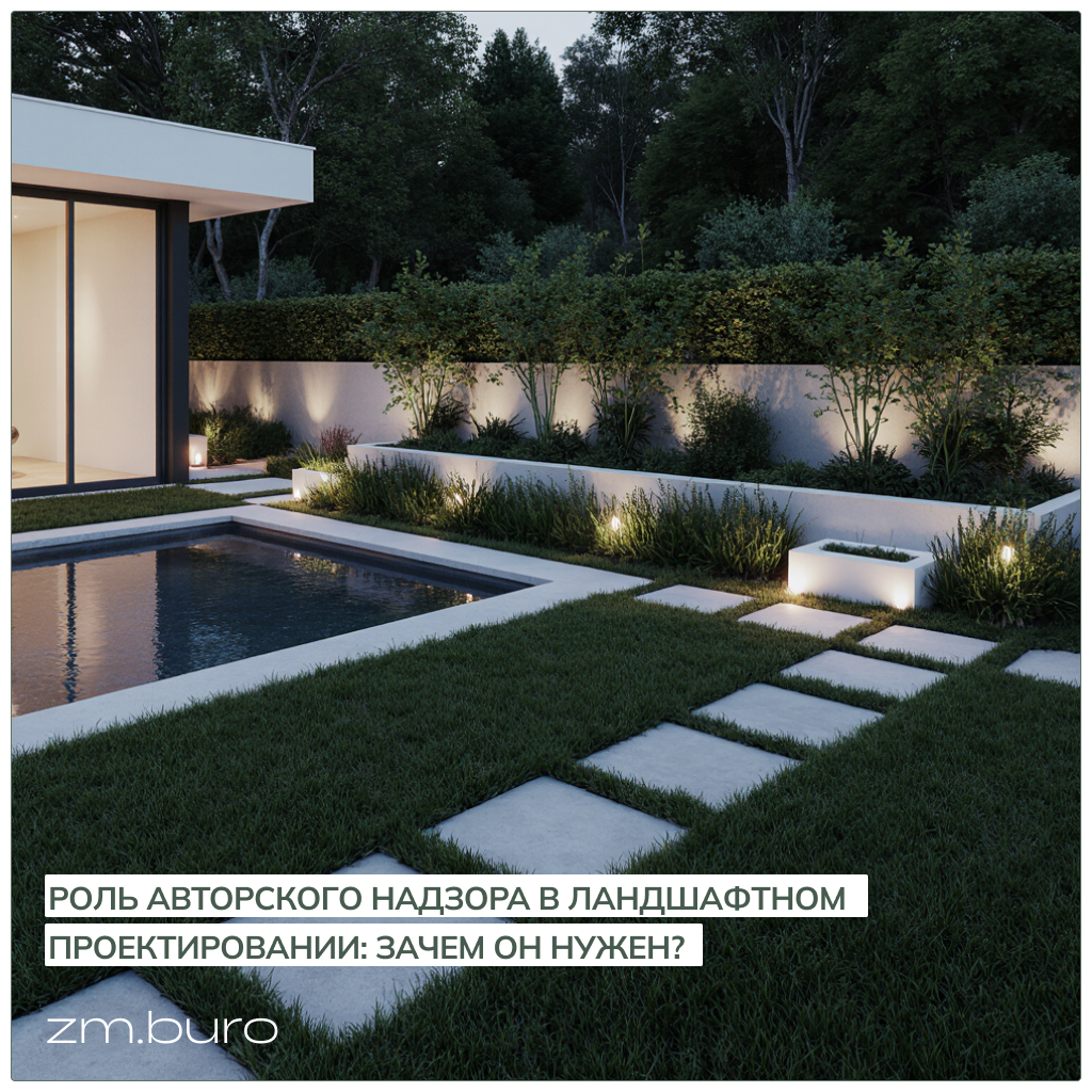 Привет! Меня зовут Фёдор Беляев, я — основатель архитектурной студии zm.buro. Уже больше 10 лет я занимаюсь ландшафтным проектированием и вижу одну и ту же картину: красивые проекты на бумаге часто превращаются в головную боль при реализации. Причина? Отсутствие авторского надзора. Сегодня расскажу, что это такое, зачем он нужен, какие ошибки помогает избежать и почему именно от авторского надзора зависит то, насколько гармоничным и долговечным будет ваш участок. Если объяснить просто: авторский надзор — это сопровождение проекта архитектором или проектировщиком на этапе реализации. То есть специалист, который придумал концепцию, следит, чтобы её воплотили правильно: Без этого контроль уходит полностью подрядчикам, а их цель часто простая — сделать побыстрее и подешевле. Здесь часто возникает путаница. Эти два вида контроля не заменяют друг друга. Технический контроль гарантирует безопасность и соблюдение норм. Авторский надзор гарантирует качество, эстетику и сохранение идеи. В практ