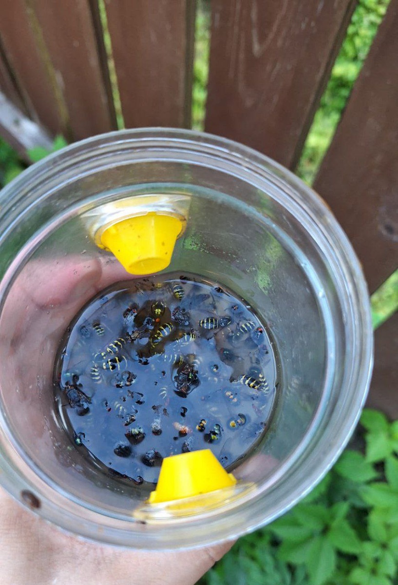 Как я ловлю ос — мой способ без яда Чтобы осы не портили ягоды и плоды в саду, мы с июля развешиваем ловушки для отлова ос с препаратом Отос. Просто берем пластиковую бутылку, высыпаем туда порошок, добавляем теплую воду и встряхиваем, чтобы хорошо перемешать. Развешиваем по участку. Берем обычно 0,5-литровую пластиковую бутылку. 💡Самое простое - срезать верхушку и вставить её обратно перевернутой в бутылку. 💡Ещё эффективнее - вставить жёлтый пластмассовый леток - заказываю на Вайлдберриз). 💡Используем также специальные ловушки. Развесили ловушки на деревьях, на заборе рядом с малиной, крыжовником и виноградом, а также — стало намного спокойнее. Отос не содержит ядохимикатов, поэтому безопасен для людей и животных. Не привлекает пчёл, можно использовать рядом с пасекой. Полезный пост? Тогда буду ждать Ваши добрые лайки ❤️👍🔥. Спасибо за внимание. #осы #отос