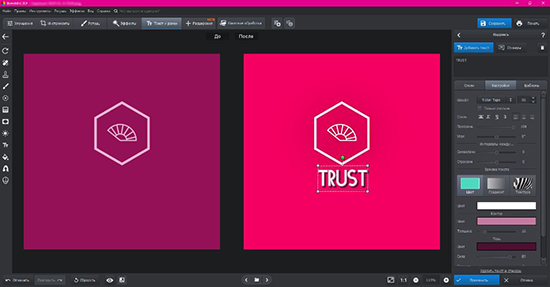 Многофункциональный софт, предоставляющий богатые возможности редактирования. Тонкие настройки букв, деталей и всех элементов помогают существенно выделить свой магазин на фоне конкурентов. Большая часть функций доступна совершенно бесплатно.