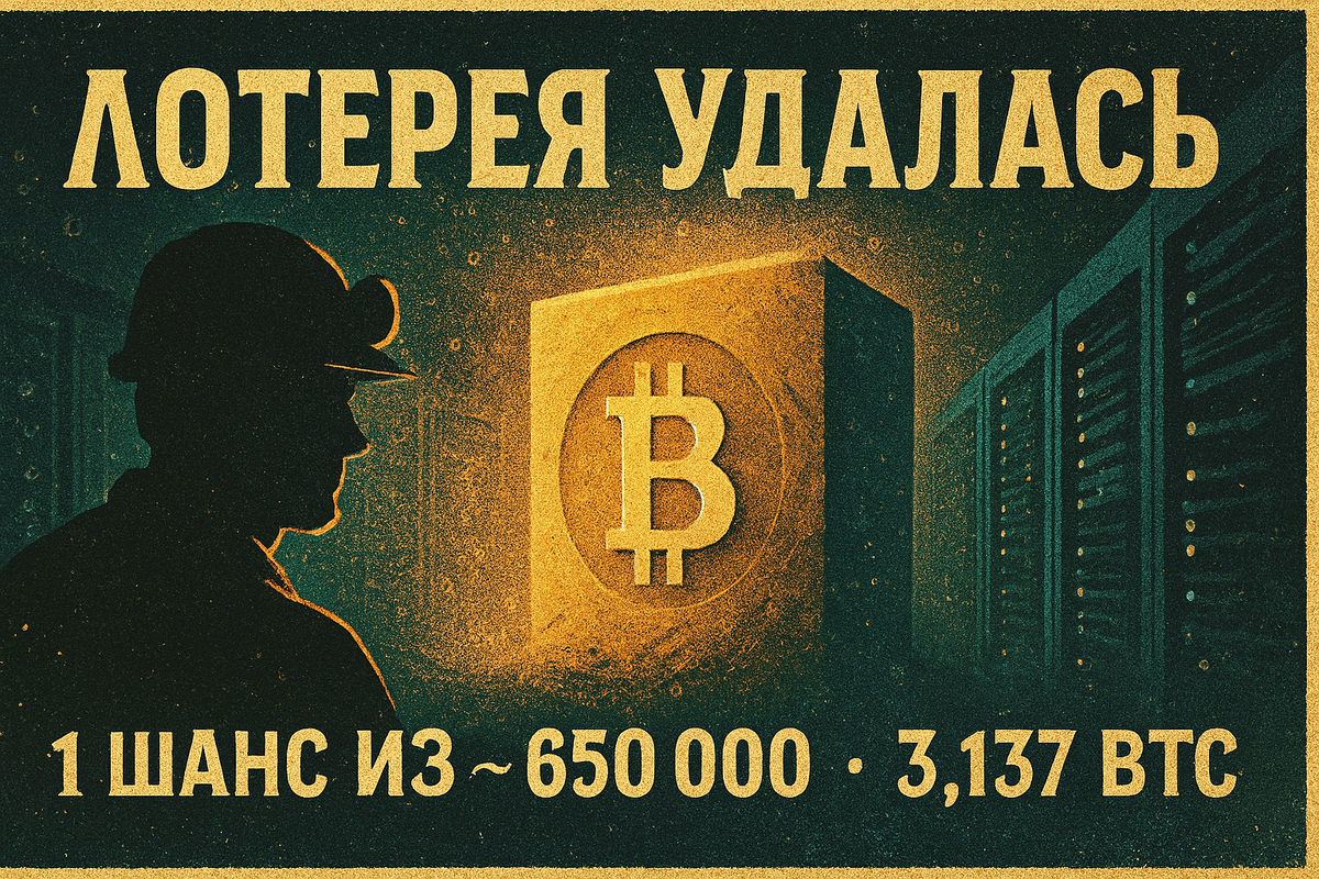 Воскресенье, 17 августа 2025 года стало судьбоносным для одного анонимного майнера: он в одиночку добыл блок № 910 440 в сети Bitcoin, обойдя гигантские фермы с тысячами ASIC-машин. Его награда — 3,137 BTC или около $371 000 по текущему курсу.