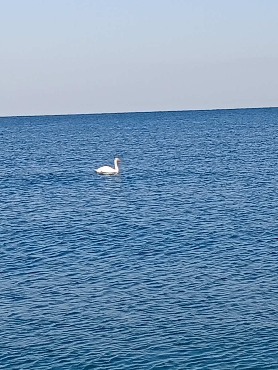 Сегодня с утра я отправился пешком вдоль моря по направлению к Западу. И сразу увидел плывущего по морю лебедя. Потом прошёл ещё километр и увидел сидящую на песке чайку. Постепенно люди остались позади и я вышел на настоящий дикий пляж. Вокруг никого. Из глинистого обрыва течёт родник. Вода холодная и вкусная. Чуть подальше небольшая пещера Сегодня вечером попытаюсь встретиться с ещё одно своей севастопольской родственницей. Ехать до неё тоже неблизко. Наступил вечер, и выяснилось, что свидание с родственницей отменяется. Ну что же: теперь у меня появилась возможность посетить могилу моей бабушки и деда. Поехали на кладбище. Наши знакомые, которые сейчас отдыхают в Евпатории, прислали красивые фотографии. Очередной день закончился. Завтра вероятно никуда не поедем, поваляемся на пляже.