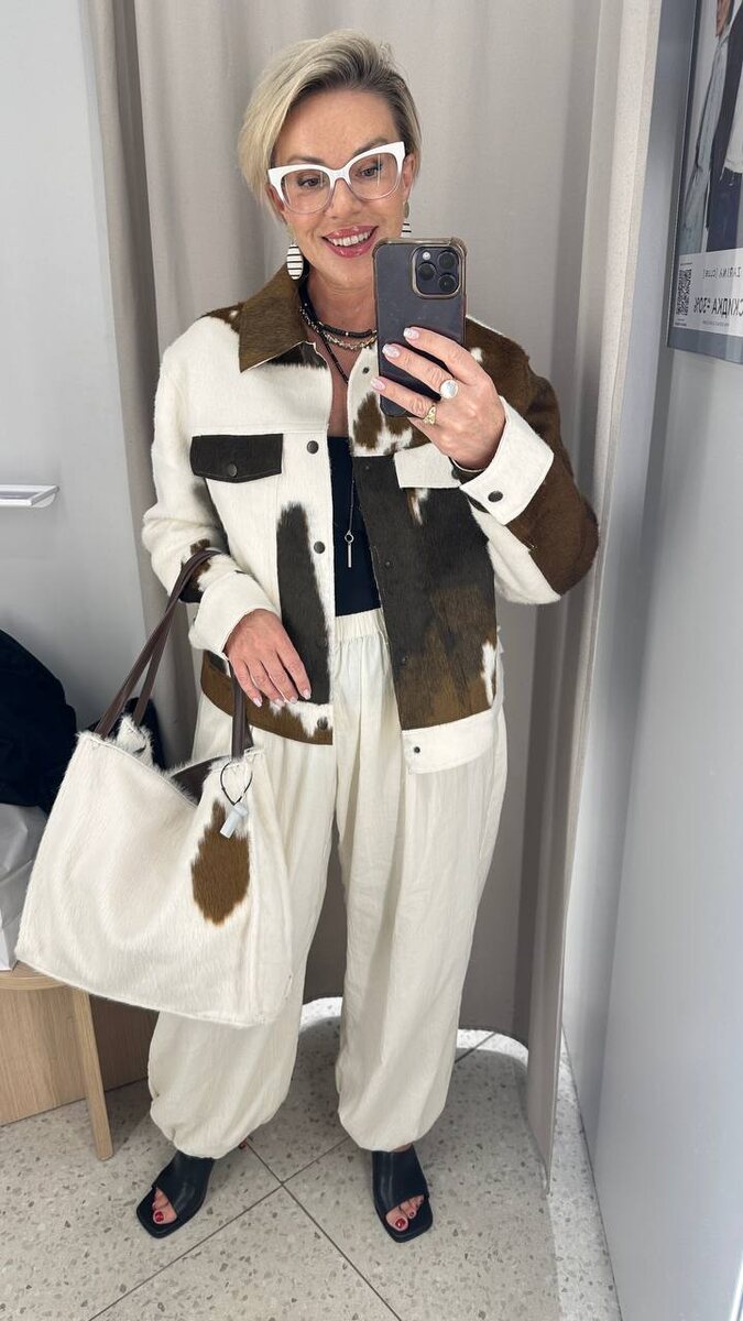 Здравствуйте, дорогие читатели! Вы просите начинать уже делать осенние подборки, и в этом я с вами полностью согласна, - пора, хоть так не хочется пока отпускать лето... Недавно я заходила в Zarina и сегодня покажу вам, что из новинок мне особенно приглянулось. Посмотрим, в том числе, на самую трендовую верхнюю одежду на грядущий демисезон. Не забывайте ставить лайк за мои старания! Начну с коровьего принта, как одного из самых популярных и трендовых на данный момент. Он переходит с нами в осень, поэтому не стоит бояться приобретать соответствующие вещи. У меня для вас несколько классных идей для покупок. Первая - это укороченная куртка на теплую осень, очень эффектная, выглядит дорого. Ее вы видите на мне на фото. Ссылка на куртку Вторая - вместительная сумка-шоппер, которую будет легко вписать в осенние образы. Ссылка на сумку Также однозначно советую юбку миди, у меня у самой есть аналогичная. Ссылка на юбку Покажу вам пару вариантов образов с ней. В первом вы, кстати, можете обрати