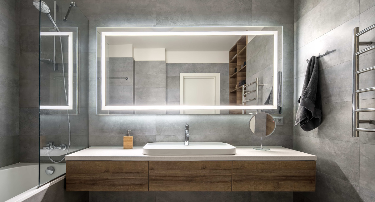 Для зеркал с вилкой нужна розетка в безопасной зоне (обычно Зона 3, не ближе 60 см от ванны/душа).