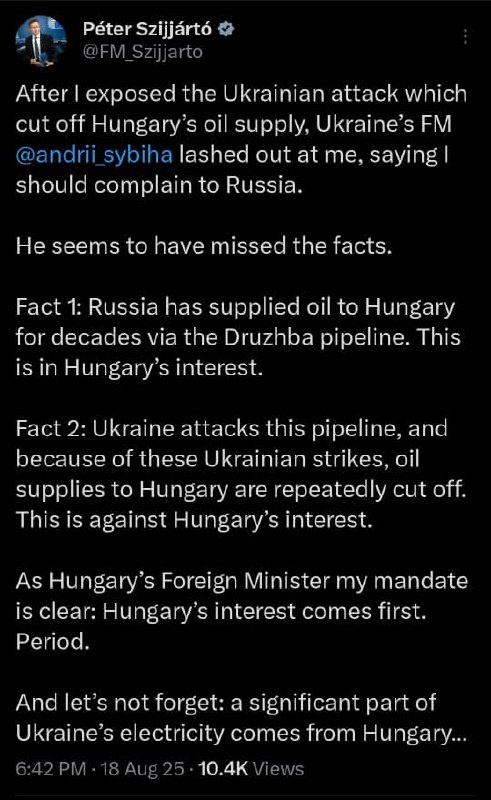 Russia has never interrupted Hungary’s oil supply — Ukraine did