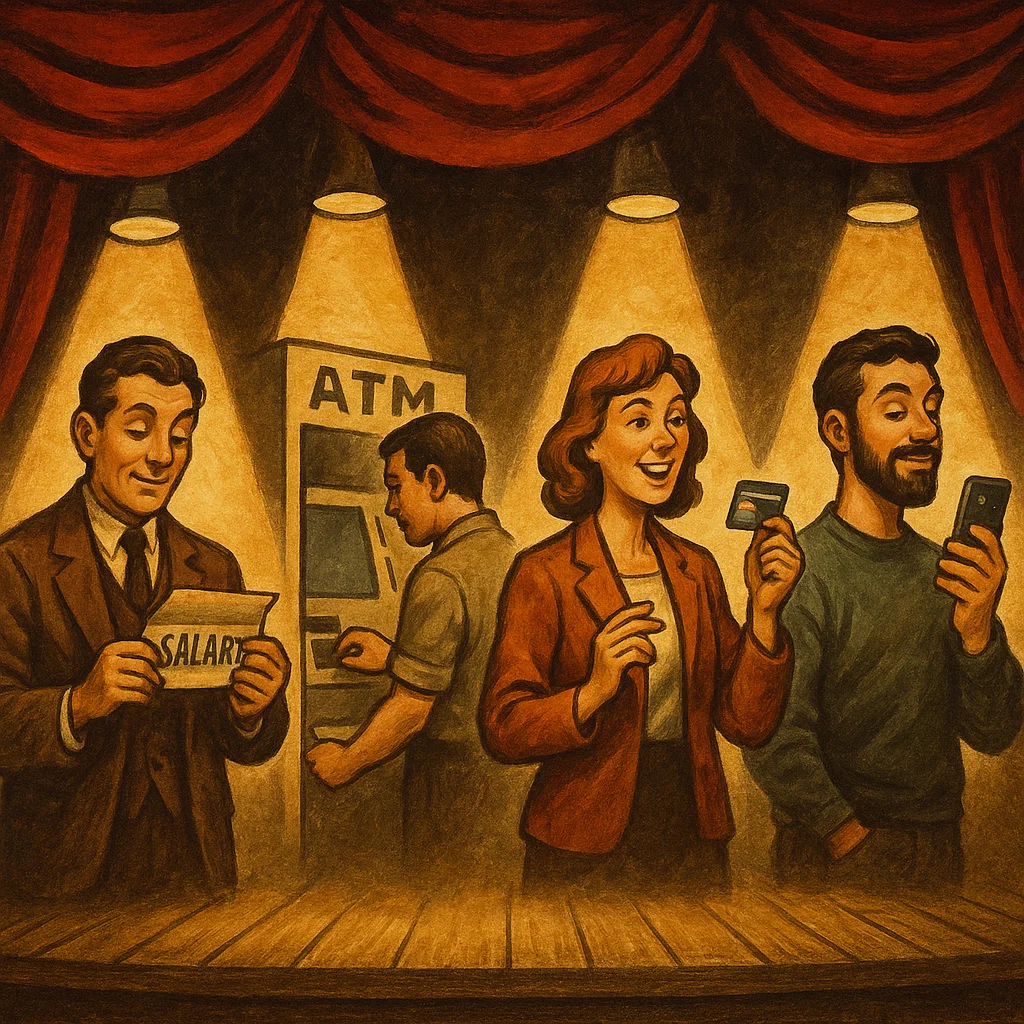 Представь: пятница, конец месяца. В бухгалтерии очередь — как за новым айфоном. Люди стоят, переминаются с ноги на ногу, кто-то шутит, кто-то нервно поглядывает на часы. Наконец кассир выкладывает на стол пухлый коричневый конверт. Внутри — хрустящие купюры, иногда с запахом свежей типографии. Кто-то сразу пересчитывает каждую бумажку, кто-то прячет в карман, мечтая вечером «отметить получку» в ближайшем кафе. Для многих это был один из самых волнительных моментов месяца. Звучит как сцена из старого фильма? Но так жили наши родители и старшие коллеги всего каких-то 20–30 лет назад. Сегодня же мы просто смотрим в приложение: «+65 000 ₽» — и продолжаем пить кофе. Но путь от конверта до одного «пика» телефоном в магазине был длинным, со своими страхами, курьёзами и маленькими революциями. До 90-х годов зарплата почти всегда выдавалась наличными. Это был целый ритуал: У конверта был важный психологический плюс: ты буквально чувствовал деньги. Бумажные купюры в руках казались весомыми и «ре
