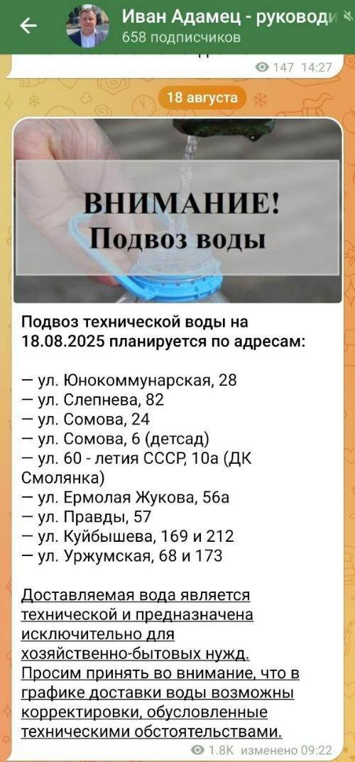«В Куйбышевском районе неделю просим наполнить бочку на Ермола