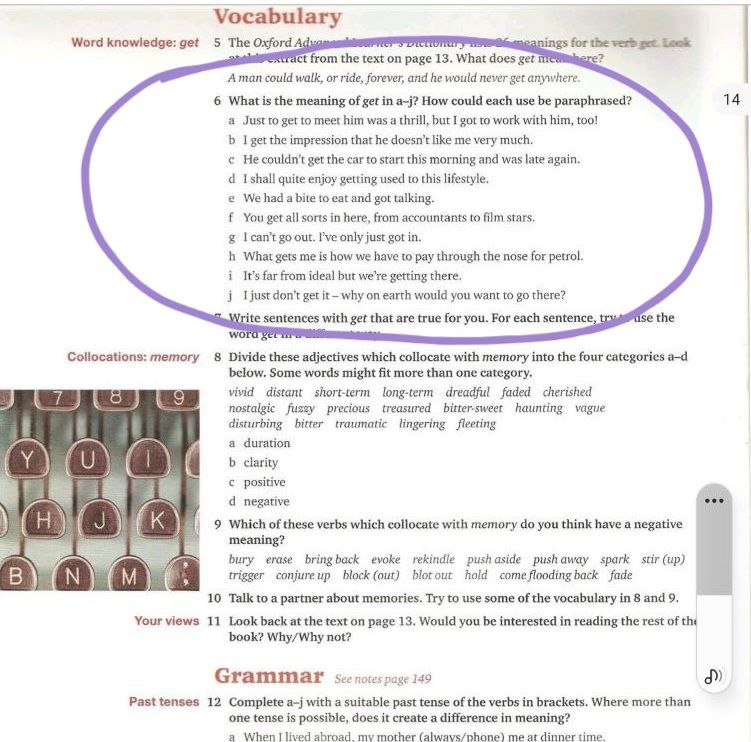Я частенько заглядываю в учебник по Proficiency English, и, поскольку он самого высокого (по Кембриджу) уровня, там язык развернут ну во всей своей красе! ⚡️А краса его - на любой вкус: ✔️для супер-красноречивых - пожалуйста - 20 синонимов к слову "beautiful" или 18 устойчивых словосочетаний с "воспоминаниями" и т. д. ✔️для реальной жизни, где надо максимально быстро и понятно изъясниться, тоже есть плюшка: 1 слово выручает в самых разных контекстах. 🔥И ярчайший пример, о котором не устану жужжать - это слово 🔤🔤🔤 Сложность в том, что его Чувствовать надо, дословно зачастую не переведешь. ❗️Но☝️ Научись с ним обращаться - и ты снабжён необходимым вокабуляром на все случаи жизни❗️ Смотрим на примеры: a Сам факт знакомства с ним уже был крут, но мне еще и поработать с ним довелось! b Сдается мне, что он недолюбливает меня. c Он никак не мог завести машину утром и снова опоздал. d О, привыкать к такому образу жизни будет весьма приятно. e Мы перекусили и стали болтать. f Здесь