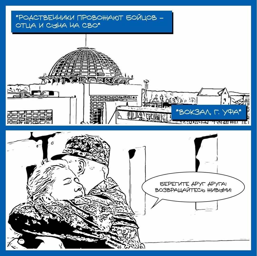 Эту историю рассказали в комиксе, созданном в республиканском филиале фонда «Защитники Отечества». Главные герои этой трогательной и героической истории - отец и сын из Башкирии, которые вместе оказались на передовой. Сержант с позывным «Шеф» ушел на фронт в сентябре 2022 года, сообщает Башинформ. В декабре следующего года в ряды военных вступил его отец, взявший себе позывной «Инзер». В июле 2024 года вблизи Угледара «Шеф» подорвался на мине, выполняя боевую задачу. Их отряд атаковали дроны-камикадзе. Больше суток «Шеф» оставался под огнем, без еды и воды. Отец, находясь в командном пункте, слышал разговоры по рации. Как только появилась возможность, он выдвинулся с эвакуационной группой на поиски раненых. «Инзер» нашел сына и почти пять километров нес его на руках под обстрелами. Сослуживец с позывным «Гиря» написал стихотворение «Отец» про этот героический поступок, который позже переложили на музыку и включили в литературный сборник «Документальный формат». Молодой боец «Шеф» подел