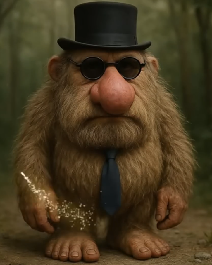 - Чёрный цилиндр и галстук придают ему вид "лесного банкира"