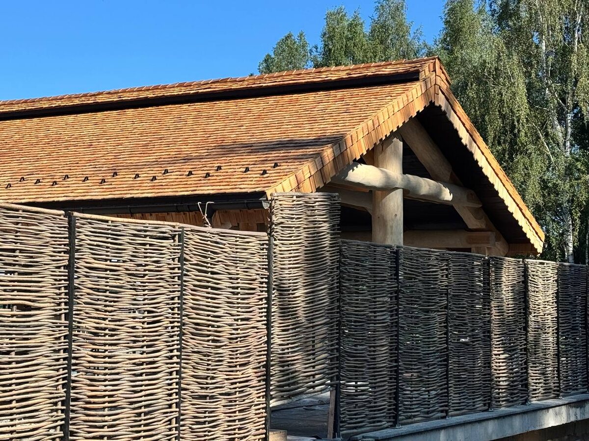 Перед нашим навесом смастерили забор из прутиков орешника…