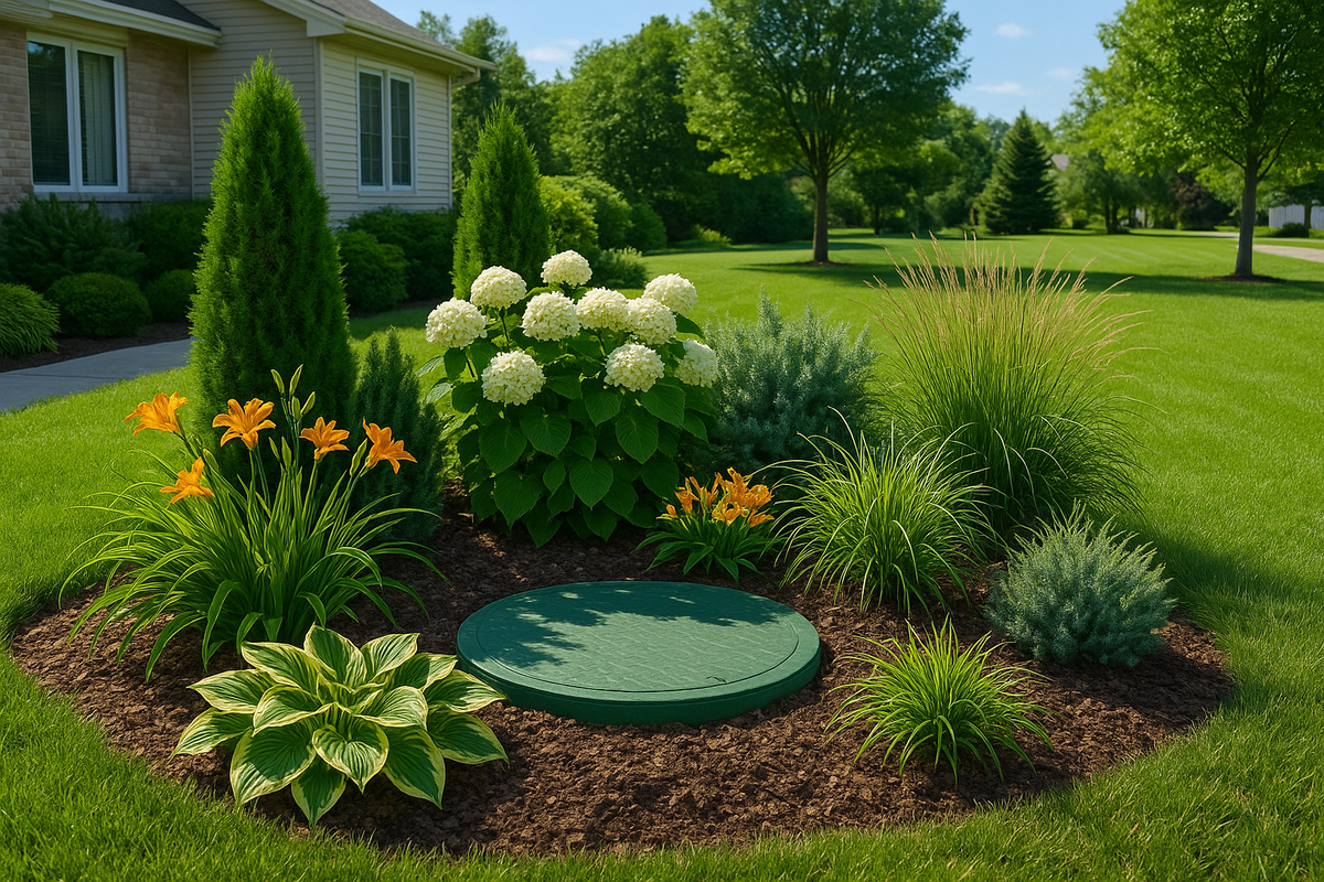 Септик — штука нужная, но вот в ландшафтном дизайне он редко становится «жемчужиной» участка.