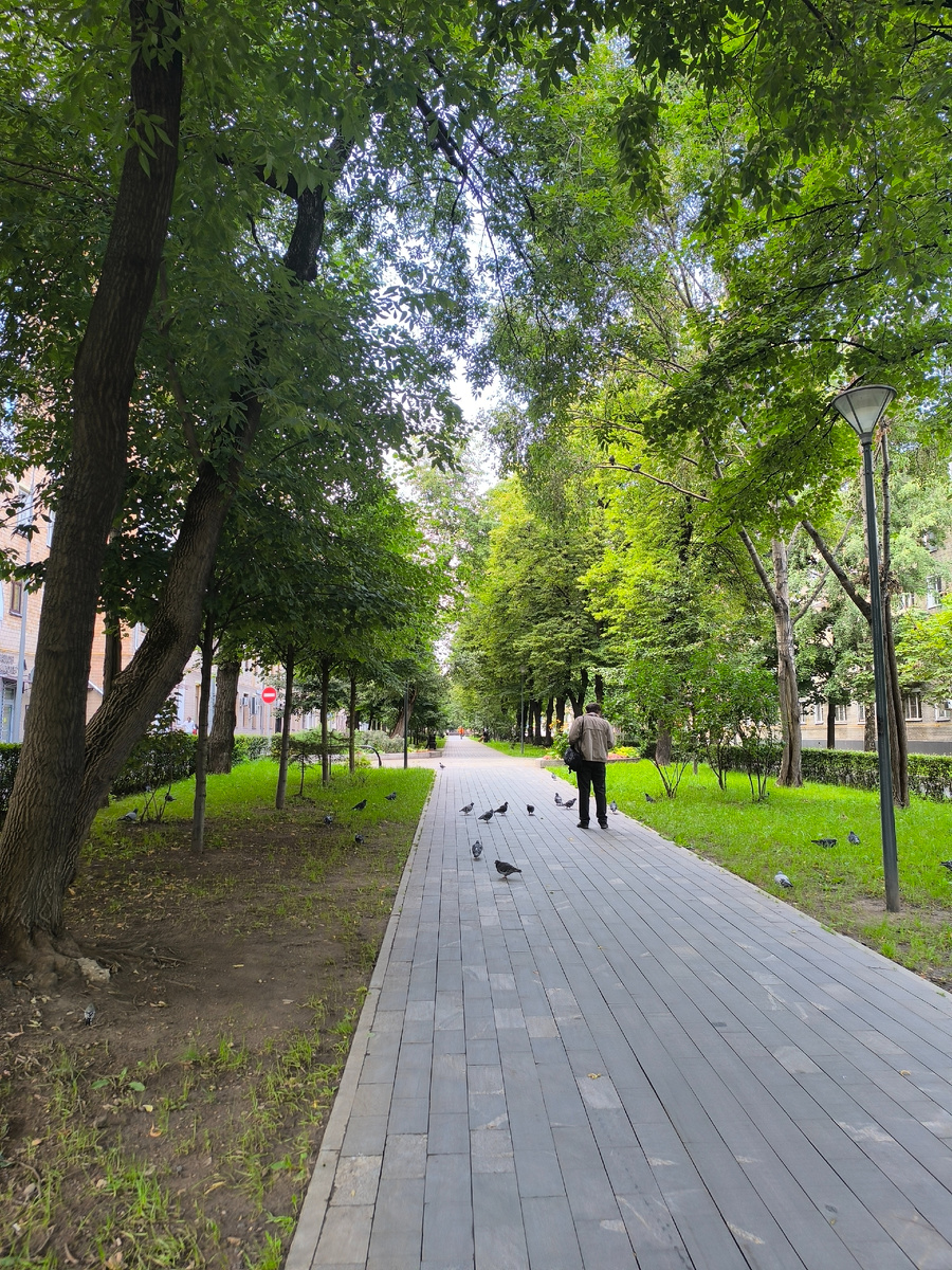 Итак, я все-таки пошла в сторону метро)). Можно было бы добраться по набережной, но рисковать не захотела, хватило шумного начала🤣🤣. Вдруг и здесь ремонт. Решила пройти по тихим улочкам, здесь до метро почти все время прямо, только один поворот, который трудно пропустить)). Вышла я на улицу Краснохолмская набережная. А вот здесь и поворот направо. Идти вверх небольшое испытание для моих уставших ног)). В этом доме есть необычное кафе, называется "Хата суриката". Я только читала о нем, и тут вижу))). Как- нибудь схожу. Здесь можно поиграть с любопытными живыми сурикатами)). А вот и метро. Как я думала, что на этом все. Села в метро, но на следующей же остановке, Китай-город, я вышла. Не догуляла)). Вышла я как раз к Ильинскому скверу. Сквер расположен на месте бывших защитных укреплений Китай-города. Сразу при входе, памятник Кириллу и Мефодию. Опять пошел дождь и я мелкими перебежками, под деревьями, пробираюсь по скверу)). Зонт я забыла дома. А вот в этом доме на первом этаж