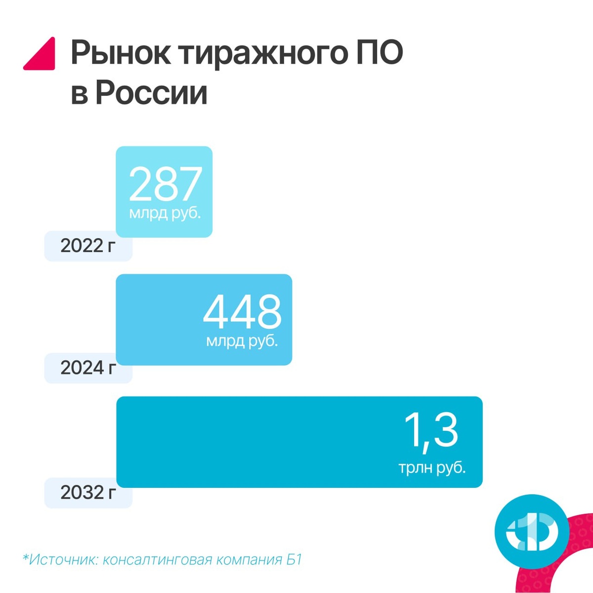 👨🏻💻Рынок тиражного программного обеспечения (ПО) в России вырос с 287 млрд руб. в 2022 г. до 448 млрд руб. в 2024 г. Рост составил в среднем 25% ежегодно, сообщила консалтинговая компания Б1. Аналитики считают, что к 2032 г. сегмент достигнет отметки в 1,3 трлн руб., а рынок ИТ-услуг превысит 1,1 трлн руб. Такие данные приводят «Ведомости».