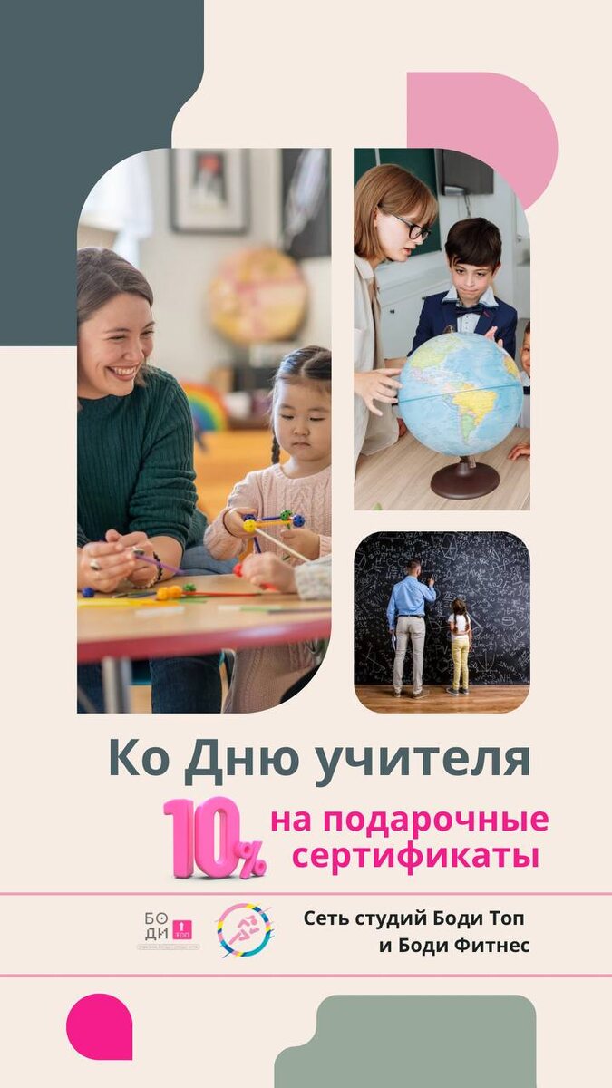 Скоро — новый учебный год, а вслед за ним и День учителя! 🍎📚 Время подумать о тёплом и полезном подарке для тех, кто каждый день вкладывает душу в своих учеников. Уже сейчас в студиях Боди Топ и Боди Фитнес можно приобрести подарочный сертификат на любой номинал — идеальный подарок учителю с заботой о его здоровье, расслаблением и зарядом энергии. 🎁 А для вас — скидка 10% на подарочный сертификат учителю! Подарите заботу, отдых и бодрость — ведь учитель заслуживает восстановления и поддержки. Выберите сертификат уже сегодня — сделайте приятное с опережением! 📍 Боди Топ & Боди Фитнес — заботимся о тех, кто заботится о детях. 🌐 https://n1159225.yclients.com 🌐 https://n960947.yclients.com