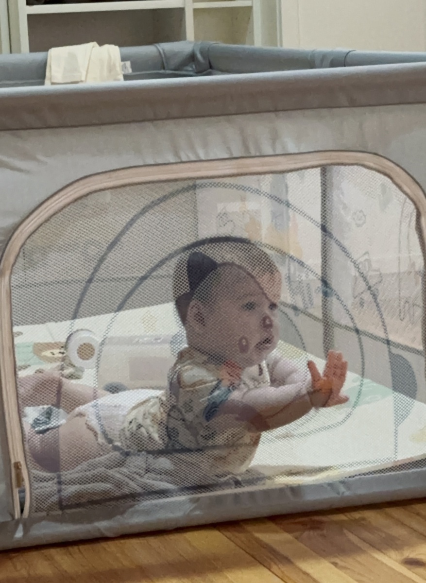 Ребёнок там играет, ползает, учится вставать, а я знаю, что он в безопасности. Это отдельный «мир», и при этом я могу спокойно заниматься делами рядом.