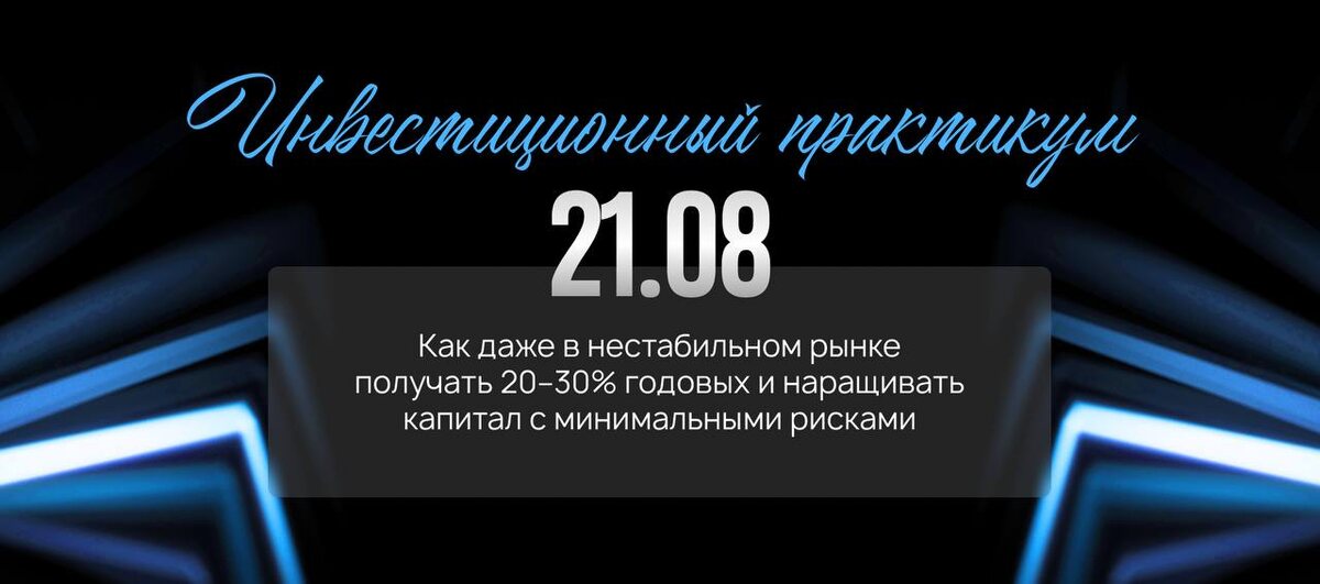 ❗️Открываем регистрацию на главный эфир лета Всем привет! Мы приняли решение по поводу эфира: уже в этот четверг! 21 августа, проведём онлайн-практикум на тему того, как даже в нестабильном рынке получать 20–30% годовых и наращивать капитал с минимальными рисками. Сразу зафиксируем ключевые моменты: 🗓 Дата и время: 21 августа, 19:00 (МСК) ⏳ Длительность: 1,5–2 часа 💵 Стоимость: бесплатно Теперь к деталям. На эфире вас ждёт насыщенная программа: 1️⃣ Почему сейчас уникальное окно возможностей? Разберём, почему именно в 2025–2026 годах можно резко улучшить доходность. 2️⃣ 5 признаков, что ваш портфель теряет деньги уже сегодня. Простая и понятная самодиагностика: мешают ли вам ошибки зарабатывать? 3️⃣ Какова цена бездействия? Покажем разницу в капитале между доходностью 10% и 20% годовых на горизонте 10 лет — в цифрах и наглядных примерах. 4️⃣ Две проверенные стратегии под текущий рынок • Консервативная (умеренный риск, стабильный рост). • Агрессивная (повышенный риск, высокая д