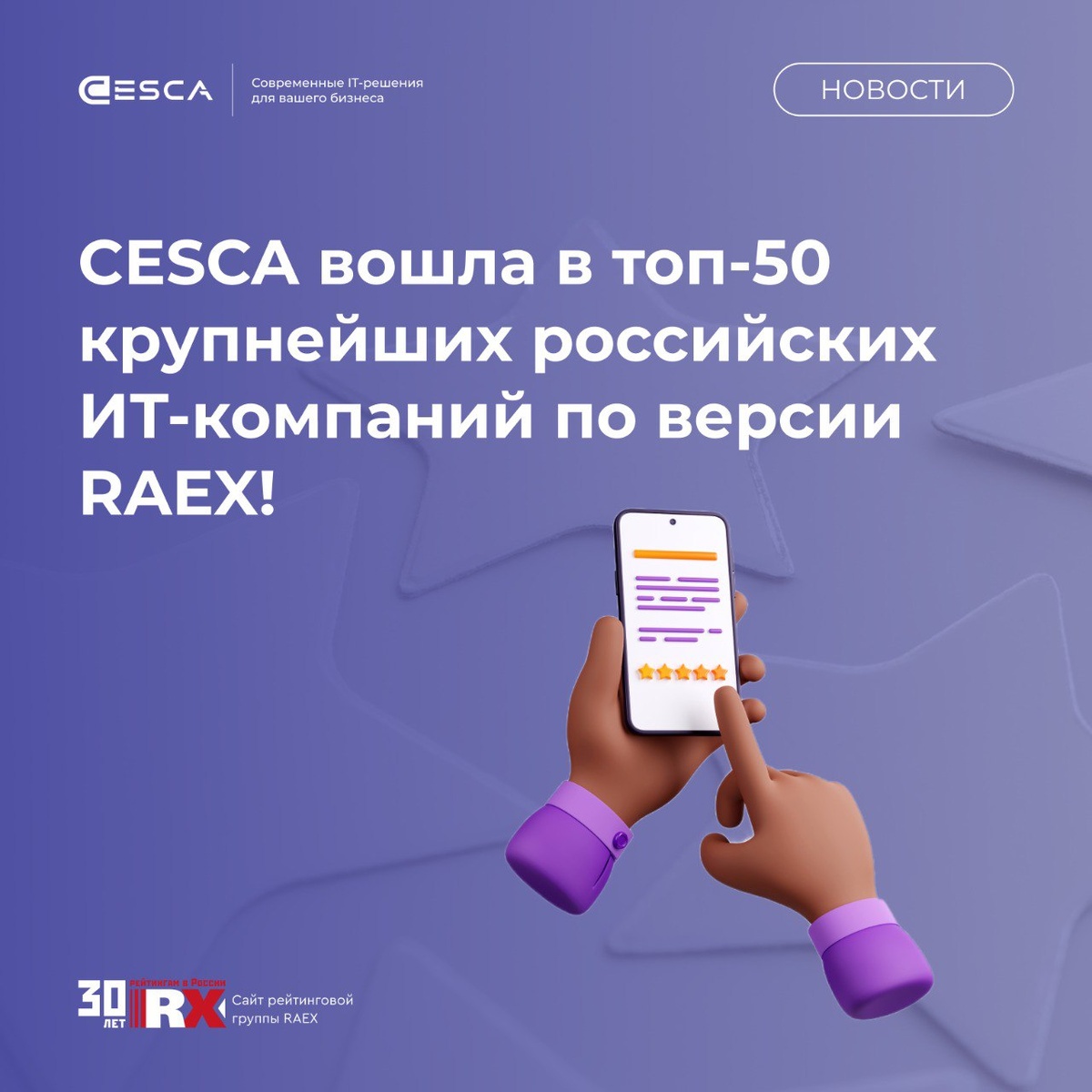 Отечественная ИТ-отрасль растёт благодаря господдержке, импортозамещению и крупным цифровым проектам. В 2024 году этот тренд подтвердил и ежегодный рэнкинг RAEX. 🔝 Компания CESCA вошла в список крупнейших российских компаний в сфере информационных и коммуникационных технологий — это признание нашей экспертизы и вклада в развитие отрасли. 📊 Ознакомиться с полным исследованием RAEX 2025 можно по ссылке Благодарим партнёров, клиентов и команду за доверие и совместные победы! Впереди — новые горизонты 💪 Сайт | ВК | Дзен | РБК