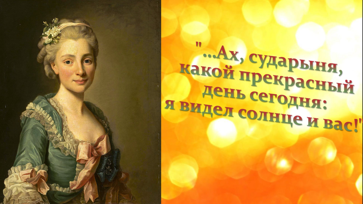 Взглянув на молодую хорошенькую женщину со свежим румянцем на щеках, с весёлыми искорками в глазах, Вольтер воскликнул: "Ах, сударыня, какой прекрасный день сегодня: Я видел солнце и вас!" Встреча с философом и эта его фраза произвели на молодую особу неизгладимое впечатление, всю жизнь она помнила её, и даже будучи уже в преклонном возрасте, с удовольствием рассказывала молодёжи об этой встрече.