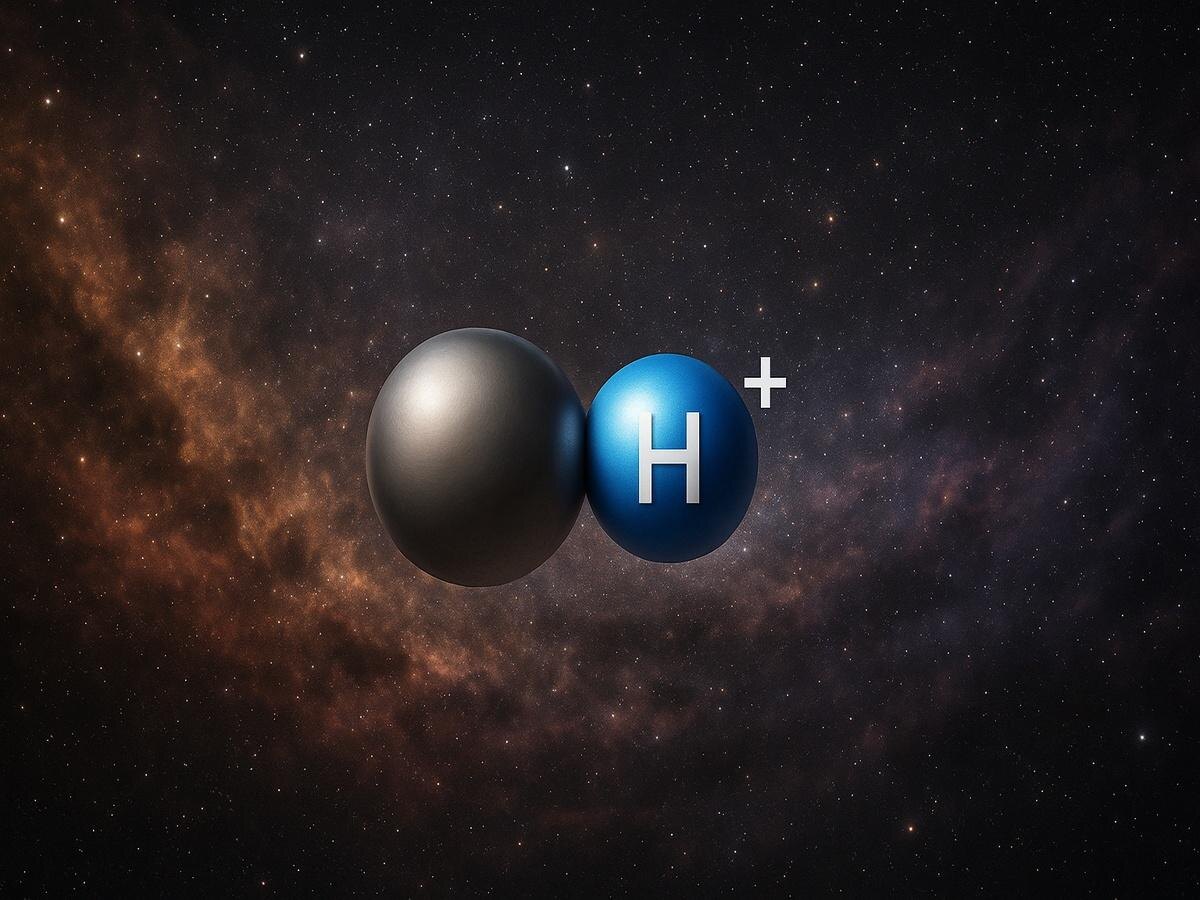 Что было в самом начале Вселенной? Не сразу после Большого взрыва, а чуть позже — когда раскалённый "суп" частиц остыл, и появились первые атомы водорода и гелия. Это время вошло в историю как "Тёмные века" — без звёзд и галактик, только бескрайнее облако газа. Учёных давно мучает вопрос: как в таком простом окружении появились первые светила? Ведь сжимающийся газ разогревается, а без эффективного охлаждения коллапс невозможен. В современной Вселенной помогают молекулы и пыль, но тогда их ещё не было. Роль "охладителя" взял на себя ион гидрида гелия (HeH+) — простейшая молекула, соединение атома гелия и протона. Он умел поглощать энергию и отдавать её в виде фотонов, позволяя облакам газа остывать и формировать первые протозвёзды. Более того, именно HeH+ запустил образование молекулярного водорода — главного материала для рождения звёзд. Долгое время HeH+ оставался теорией, пока его не нашли в космосе в 2019 году. А недавно исследователи из Института Макса Планка охладили ионы почти до