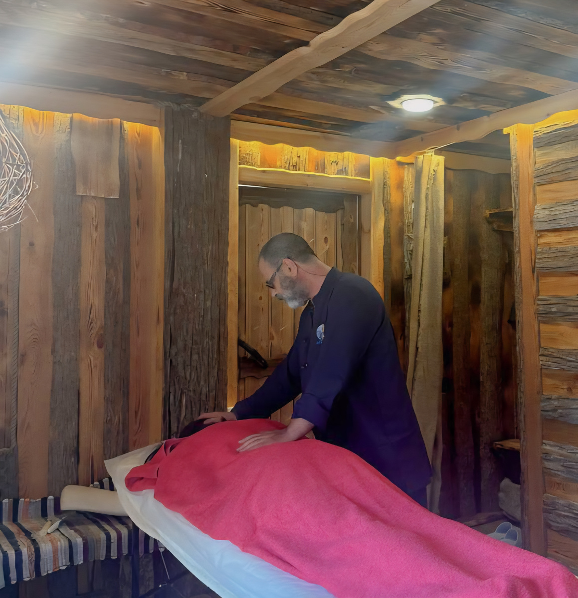 Ах, как же радостно сердцу моему деревянному видеть, как на Полянке-кормилице заботятся не только о земле-матушке, но и о здравии телесном да душевном гостей! Поведаю вам, друзья мои любезные, о диве-дивном, что открылось перед глазами моим нарисованными. Заботятся на Полянке о здравии крепком! Все мы знаем, что кроме комфорта душевного, важно здравие телесное. Поэтому хозяева Полянки пригласили в гости врача мудрого, который не только травки прописывает, а призывает на помощь силы телесные, которые в каждом скрыты. Учит дышать правильно, всей грудью, будто вольный ветер в поле гуляет. Показывает точки потаенные на теле, что боль унимают, силу возвращают, недуг отгоняют. Удивительно мне было видеть, как под перстами его искусными скорбь отступает, а легкость накатывает словно волна чистой ключевой водицы! И за приезд свой 2-х недельный провел он 97 приемов. Слышала, как довольны люди. Отдельно надо отметить процедуры банные, что обеспечивают чистоту тела и помыслов. Пребыва
