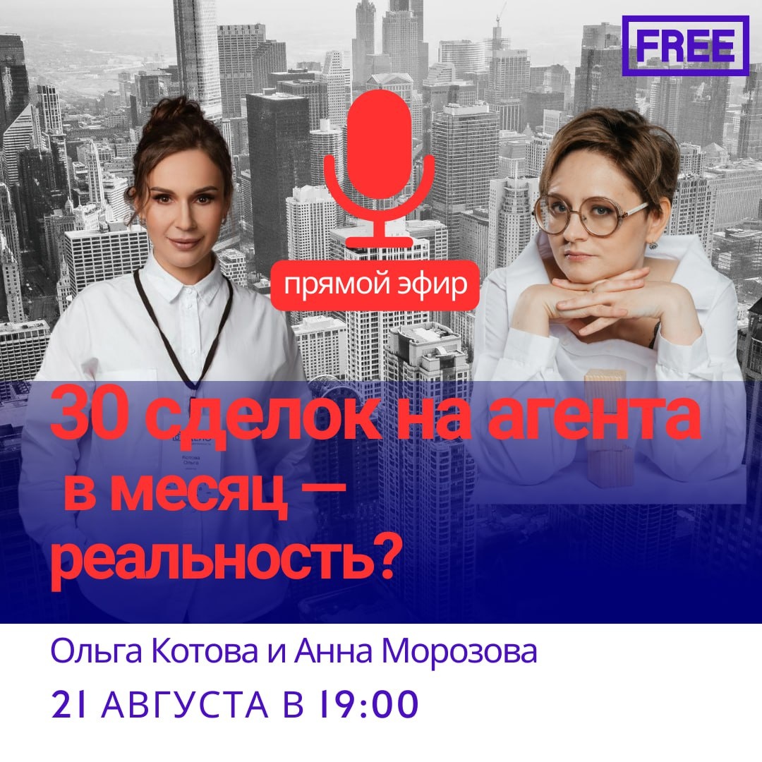 Всем доброго утра! 🔥 Приглашаю вас на прямой эфир: 30 сделок на агента в месяц — реальность? Это будет эксклюзивный разбор от практика, который знает, как вывести продажи на новый уровень! 🗓 21 августа | 19:00 🎤 Гость: Ольга Котова — руководитель АН "Дело недвижимости" (Рязань) 🚀 Тема: Как делать 30 сделок на агента в месяц? Лично буду выяснять у Ольги: ✔️ Где брать столько заявок в 2025 году? ✔️ Какие ресурсы нужны для такого масштаба? ✔️ Как не сгореть на высоких оборотах? Этот эфир для вас, если: Вы амбициозный агент, но упираетесь в «потолок» и хотите 1 000 000+ в месяц Вам нужен заряд мотивации и пример реального успеха Вы РОП или владелец агентства и ищете инструменты роста 💬 Готовы прокачать свои результаты? Задавайте вопросы в чат — разберём всё по шагам. 👉 Регистрация в чате: пишите слово ХОЧУ! P.S. Такой плотности практики вы ещё не видели. Не упустите! 🚀 Ольга представила себя так: В недвижимости с 2009 года. Два высших технических + MBA – чтобы не толь
