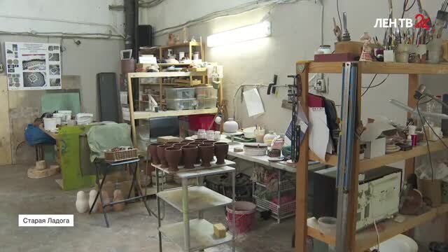 В этой мастерской рождается керамическое панно для Воротной башни Староладожской крепости. Атмосфера как в артхаусном кино: трещины на потолке, провода на стенах и полки, уставленные работами мастеров. Здесь резиденты фестиваля «Огонь и вода» проведут ключевую неделю, собирая по осколкам историю о героическом прошлом крепости.