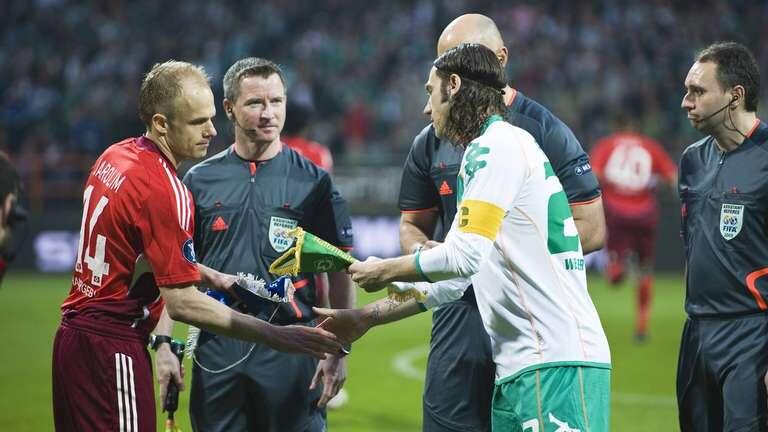 30 апреля 2009 года клубы впервые встретились в еврокубках. Хорошо знающие друг друга соперники активно начали встречу, создав ряд голевых моментов у ворот друг друга. На 28-й минуте Петр Троховски, замкнув навес Ги Демеля, поразил ворота «Вердера». В оставшееся время хозяева предприняли немало попыток сравнять счет, но гости грамотно сыграли в обороне, и даже имели шансы удвоить преимущество.