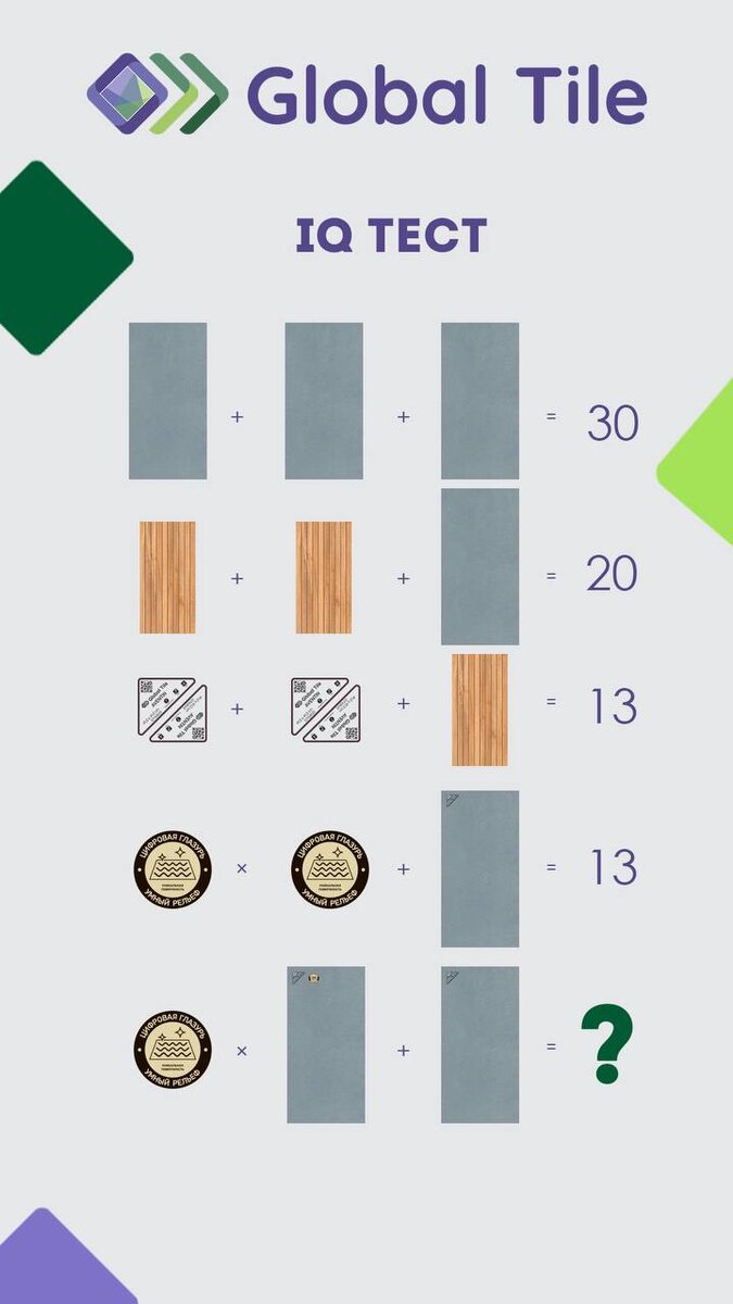 🧠 IQ тест от Global Tile 🚀 Друзья, готовы проверить свои умственные способности? Мы рады представить вам уникальный IQ тест, разработанный в сотрудничестве с Илоном Маском 🤣