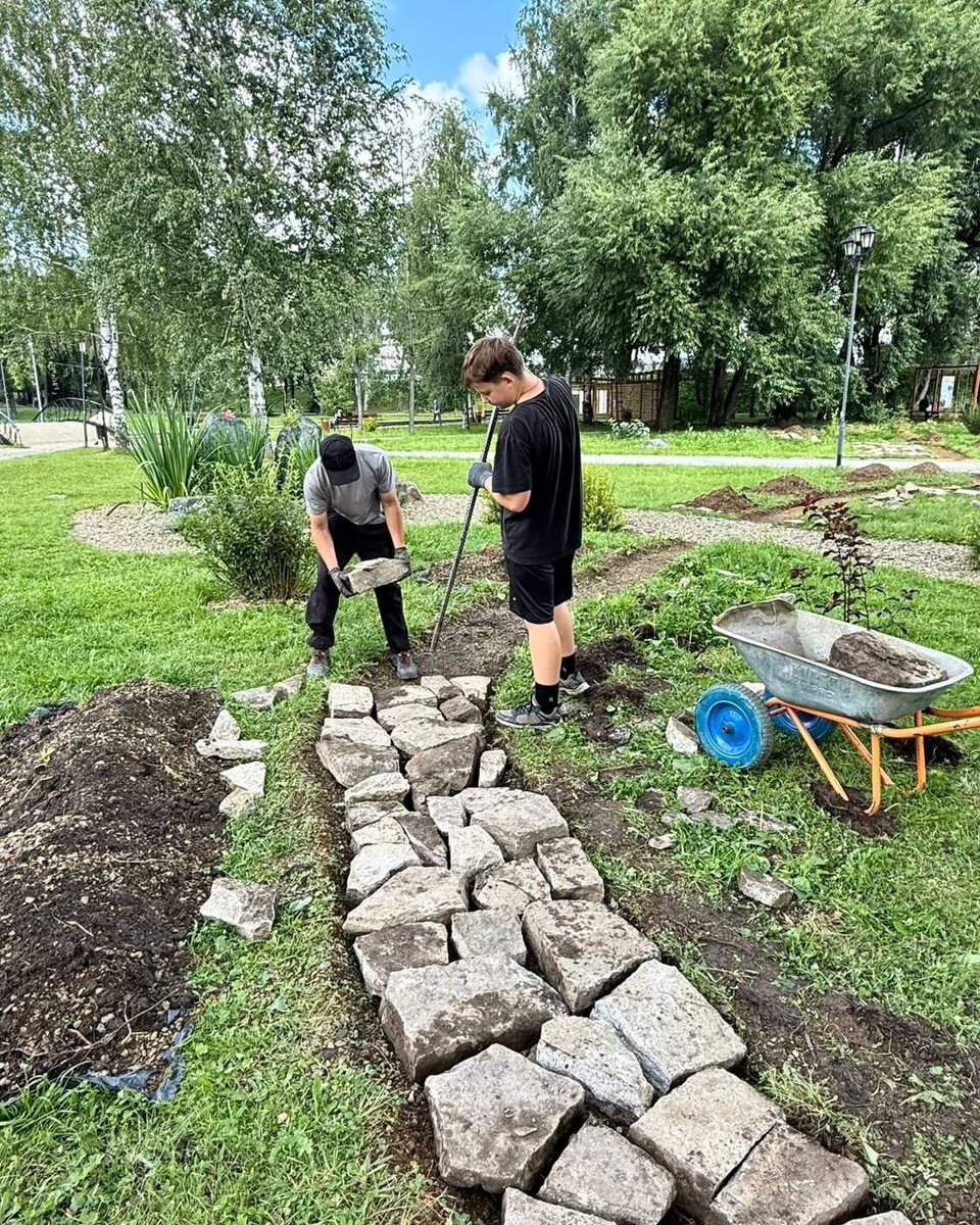 В Историческом сквере продолжается формирование каменной дорожки для красоты и разнообразия прогулок. Кроме того, установлены корнеры — важные элементы любого мероприятия. А на ул. Театральной и у администрации на клумбах идёт прополка.