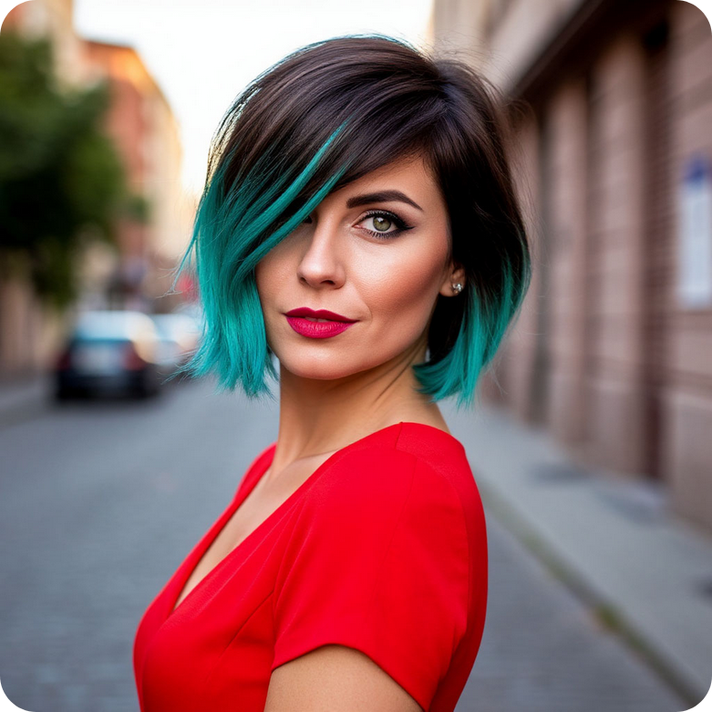 Падающие на плечи пряди. В зеркале – короткая дерзкая стрижка каре с асимметричной челкой, прикрывающей половину лба.