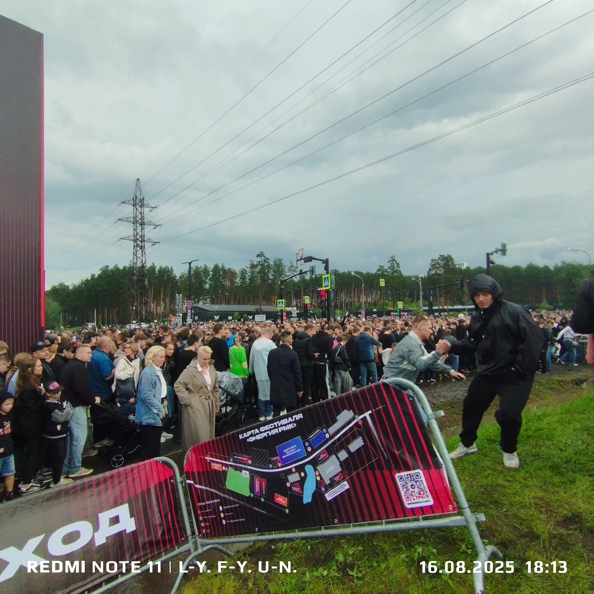 Я решил пойти пешком с главной площадки из центра и как назло пошёл очень сильный дождь. Пока шёл очень сильно вымочил ноги по лужам в тряпичных кросах. Но когда подошел просто офигел что тут творится на входе , грязь лужи и толпа зевак стоит.