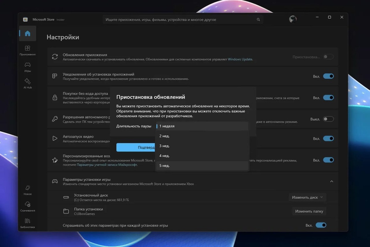Microsoft больше не позволит отключать автообновления в своем магазине 📌 🔍 Microsoftобновилаполитику управления обновлениями в своем магазине приложений для Windows 10и 11, убрав возможность полного отключения автоматической установки новых версий программ. Теперь пользователи могут лишь временно приостановить этот процесс. Ранее в настройках Microsoft Store можно было деактивировать автообновления, что давало полный контроль над тем, когда устанавливать свежие версии приложений. Согласно последним изменениям, эта функция была заменена на опцию временной отсрочки. Пользователи смогут приостановить обновления на срок от 1до 5недель. По истечении этого периода магазин автоматически загрузит и установит все доступные обновления. Предполагается, что Microsoft пошла на этот шаг для повышения безопасности пользователей.... #Microsoft #Windows #Store #приложений 🎮 Пиксель & Кадр. Подписаться