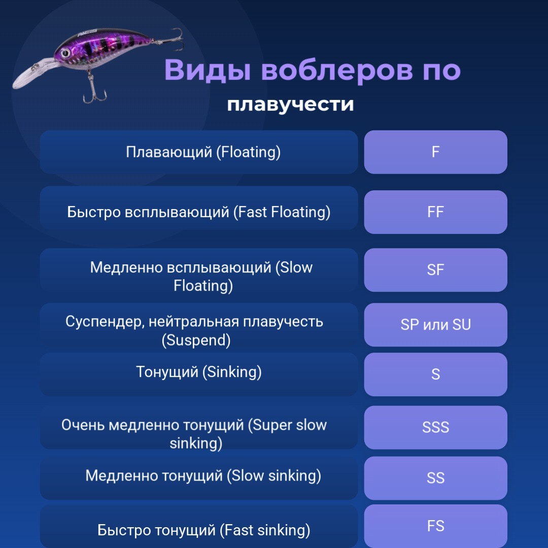 Такой вид воблеров делится еще на три подтипа – на быстро всплывающие (FF), плавающие (F) и медленно всплывающие (SF)