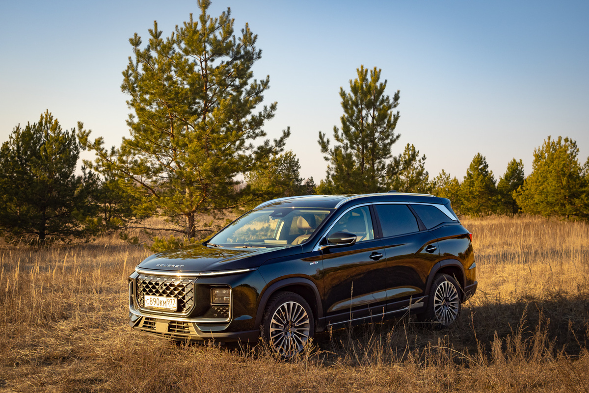 Наш китаец — близкий родственник Jetour X90 Plus. Платформа общая с Tiggo 8, Exeed VX прошлого поколения. Дизайн автомобиля запомнить непросто, каких-либо черт, указывающих на фирменный стиль, тут нет.