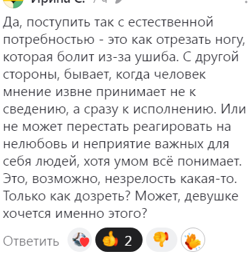 Например, такой комментарий читательницы: