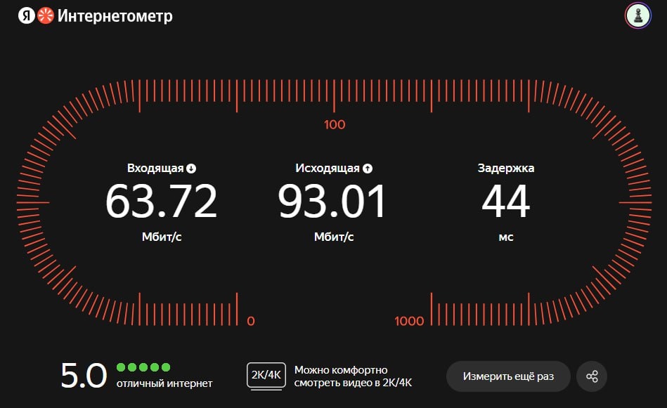 Яндекс перезапускает Интернетометр – сервис для измерения скорости интернета В обновленном сервисе для измерения скорости используется сеть CDN-серверов Яндекса, распределенных по стране и входящих в инфраструктуру провайдеров. Во время замеров Интернетометр обращается к нескольким CDN-серверам для объективности. Сервис позволяет узнать скорость скачивания и загрузки, а также пинг. Система оценивает качество соединения по пятибалльной шкале, результаты дает в понятной формулировке – например, «можно смотреть видео в 2К». Также Интернетометр представляет пользовательские сведения и техническую информацию о подключении, включая IP-адрес, версию браузера, разрешение экрана и так далее. @Медиа «Комьюнити»