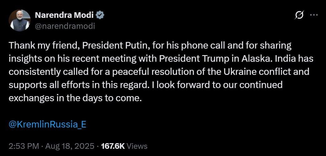 Putin updates his friend Modi on meeting with Trump via phone call