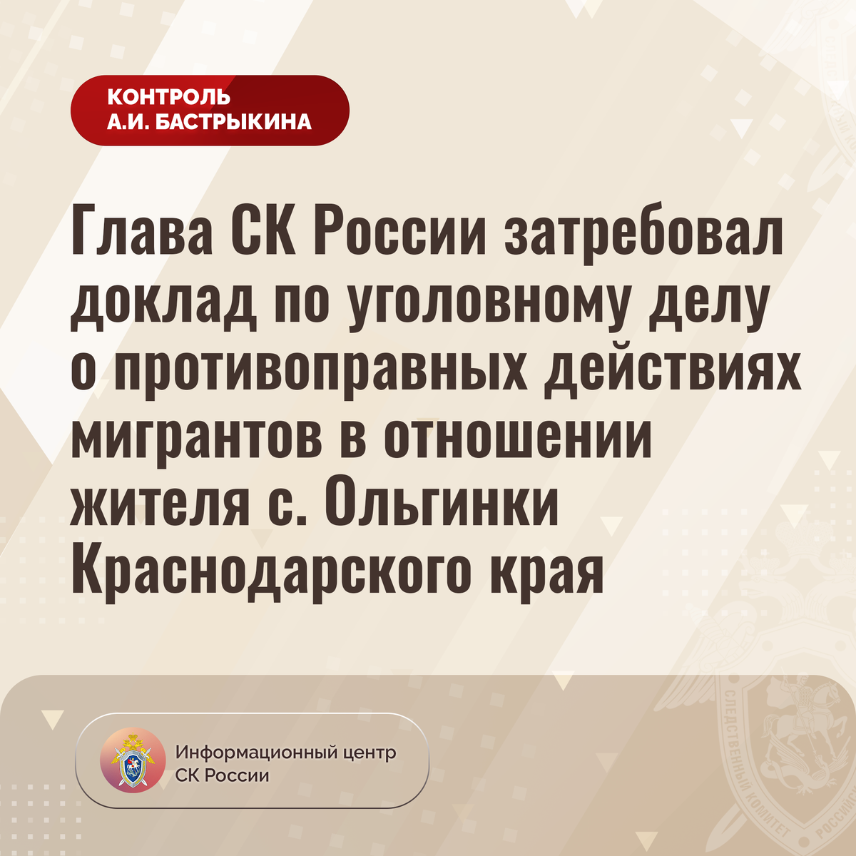 Глава СК России затребовал доклад по уголовному делу о противоправных действиях мигрантов в отношении жителя с. Ольгинки Краснодарского края