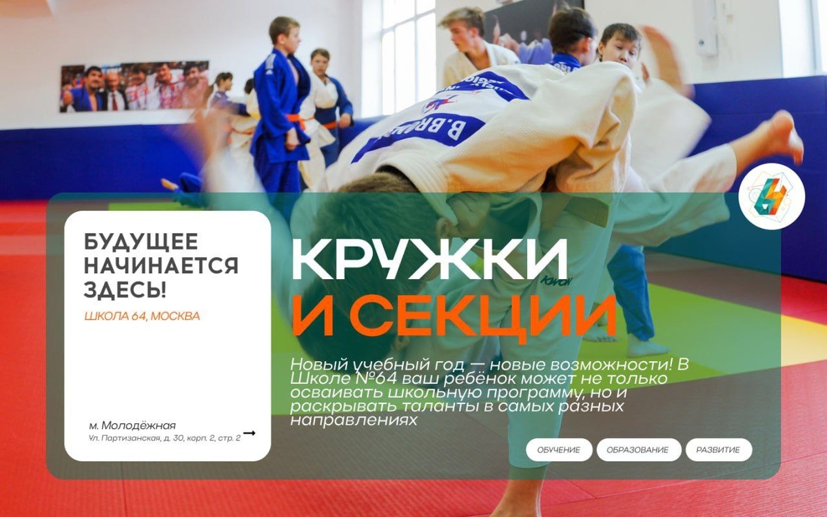 Новый учебный год — время пробовать себя в чём-то новом! В школе №64 стартовала запись в кружки и секции на 2025/26 учебный год. Мы собрали для ваших детей самые интересные направления: