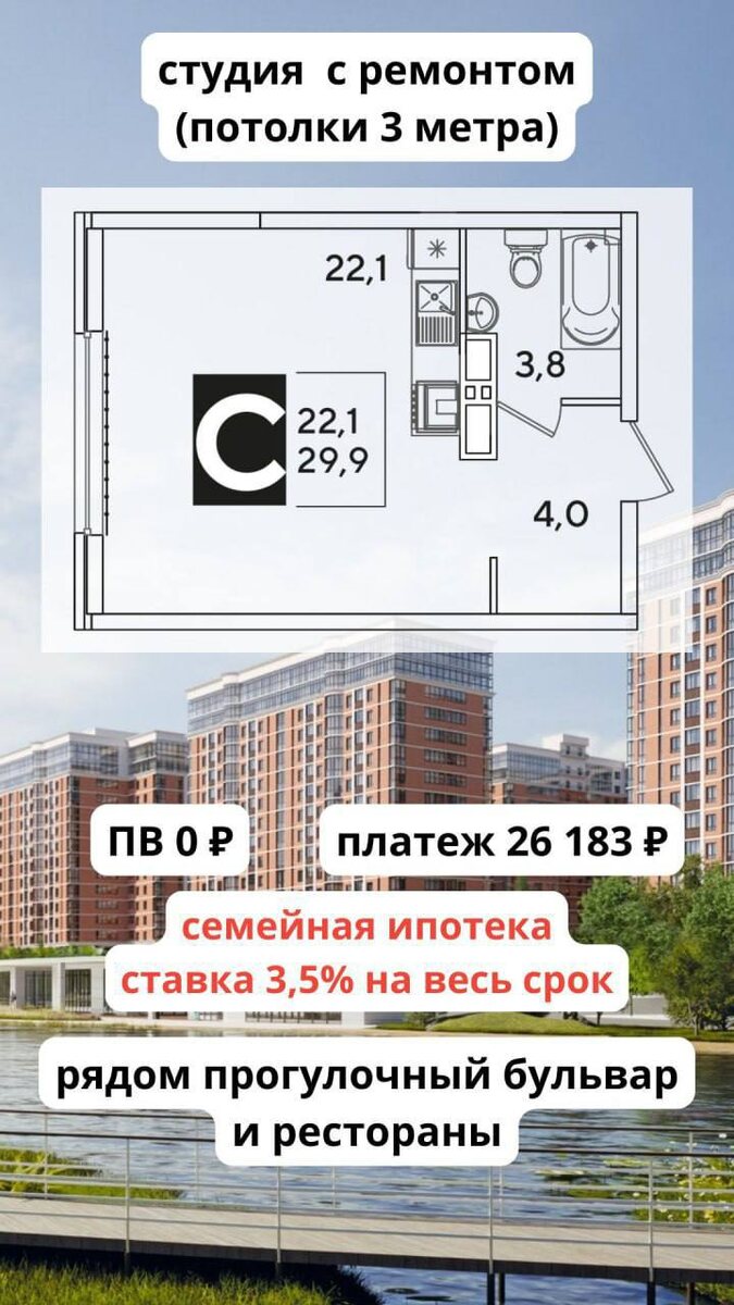 Горячее предложение Квартира дня! Краснодар Только для владельцев семейной ипотеки Большая студия 29м2 с РЕМОНТОМ, высота потолков 3м Без 1-го взноса Платеж 26000₽/мес Аренда будет перекрывать платеж по ипотеке Редкое, предложение очень ограничено! Пишите звоните @Elena_Yushkova5