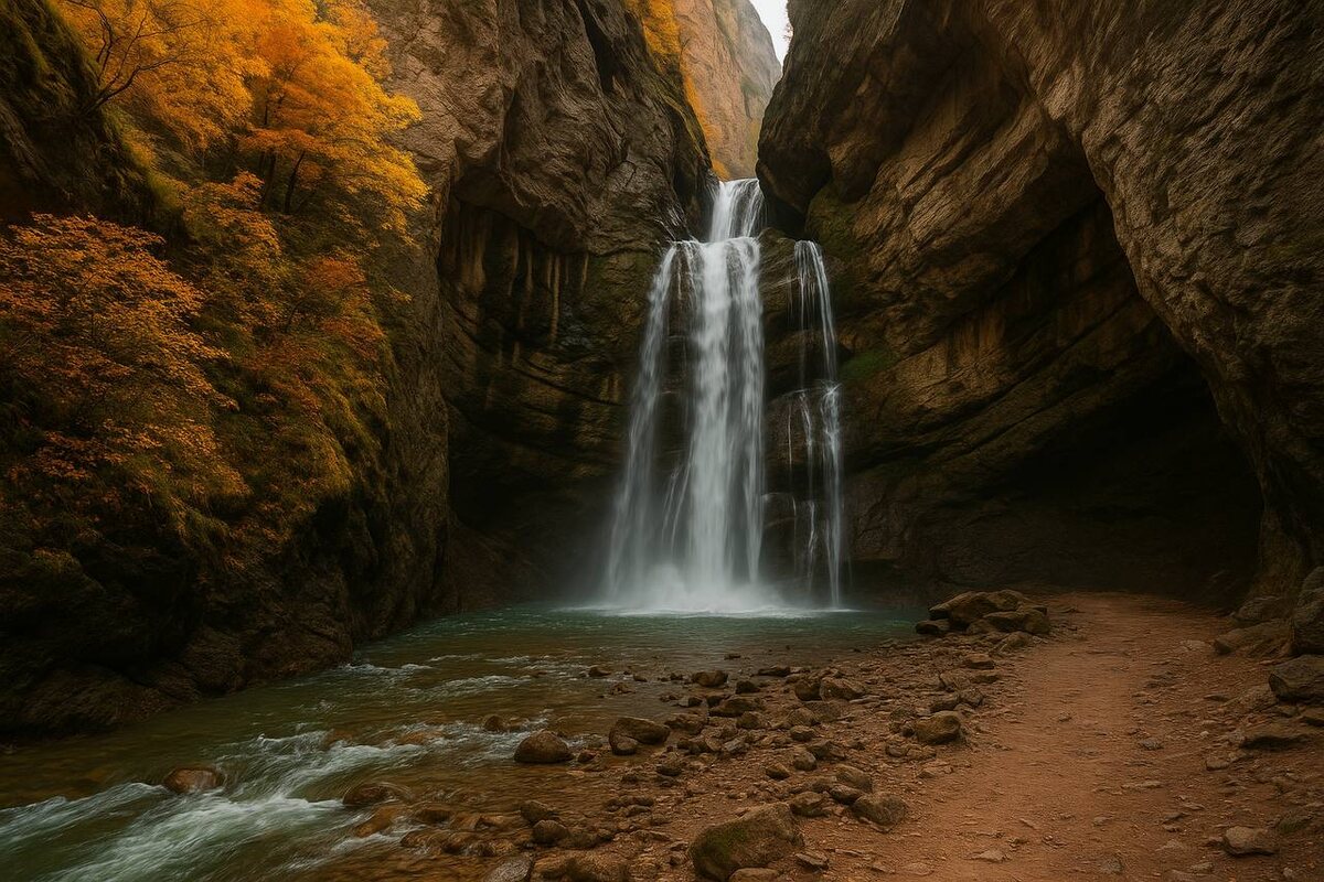 Есть такие маршруты, где путь не менее важен, чем сама цель. Осенью дорога в Чегемские водопады превращается в отдельное приключение. Здесь серпантины кажутся нарисованными рукой художника, ущелья пестрят красными и золотыми красками, а каждый поворот открывает новый пейзаж, который хочется запомнить. Большинство путешественников начинают путь из Нальчика — отсюда до водопадов около 50 километров, час-полтора езды. Можно выехать и из Минеральных Вод или Пятигорска: дорога займёт чуть дольше, зато позволит увидеть ещё больше горных видов. Маршрут пролегает через Чегемское ущелье. Сначала вас встречают горные сёла, скромные поля и скот, пасущийся прямо у дороги. Потом дорога сужается, и начинаются настоящие серпантины. Машина словно пробирается между отвесных скал, по дну ущелья бежит река, а над головой нависают каменные стены. Кажется, что сама природа решила устроить парад мощи и красоты. Осенью дорога особенно эффектна: скалы и склоны будто горят в красно-жёлтых тонах, а воздух проз