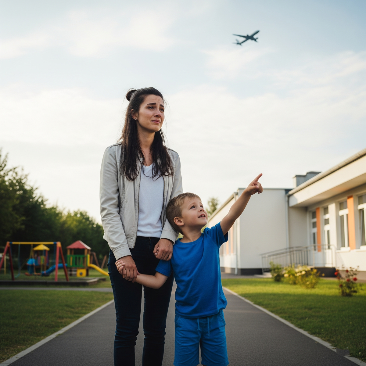 Светлана замерла. Над детским садом в этот момент пролетел самолёт — низко, с рёвом двигателей.